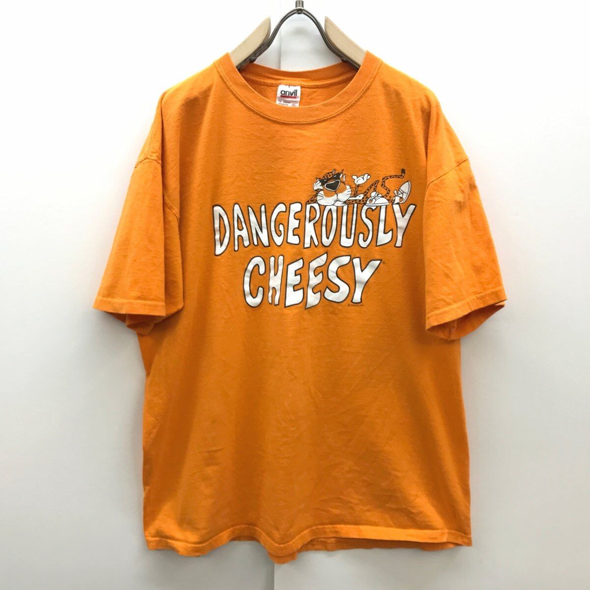 アンビル 90〜00年代 フリトレー チ?トス DANGEROUSLY CHEESY チェスター チーター 半袖 プリントT オレンジ XL