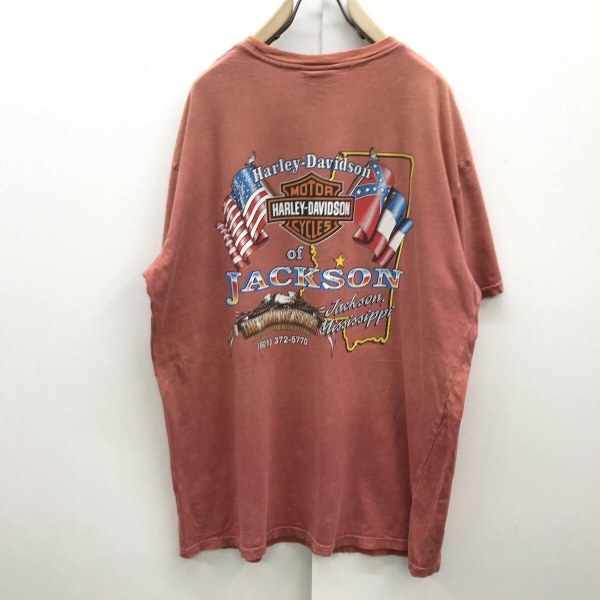 OF JACKSON THE TRAIL OF HONOR ハーレーダビッドソン 半袖 両面プリントTシャツ ムラ染め? オレンジピンク XXL