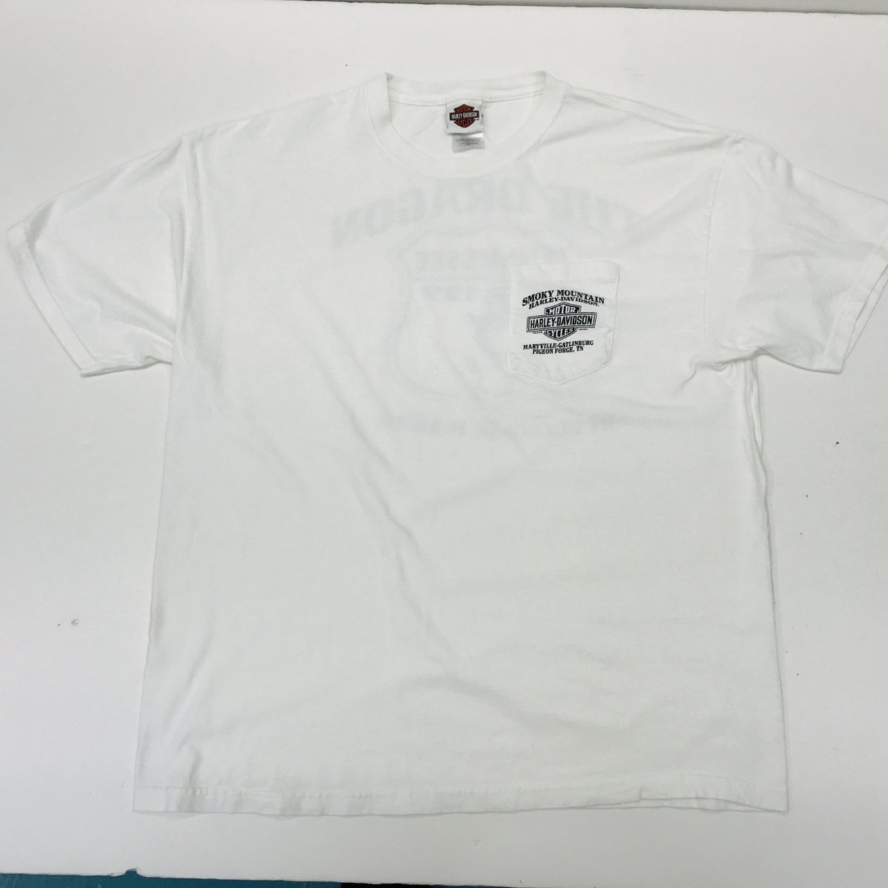 ハーレーダビッドソン THE DRAGON 00年代 HANES USA製 半袖 ポケットT 両面プリントTシャツ ホワイト XXL