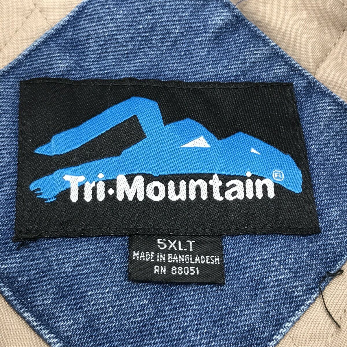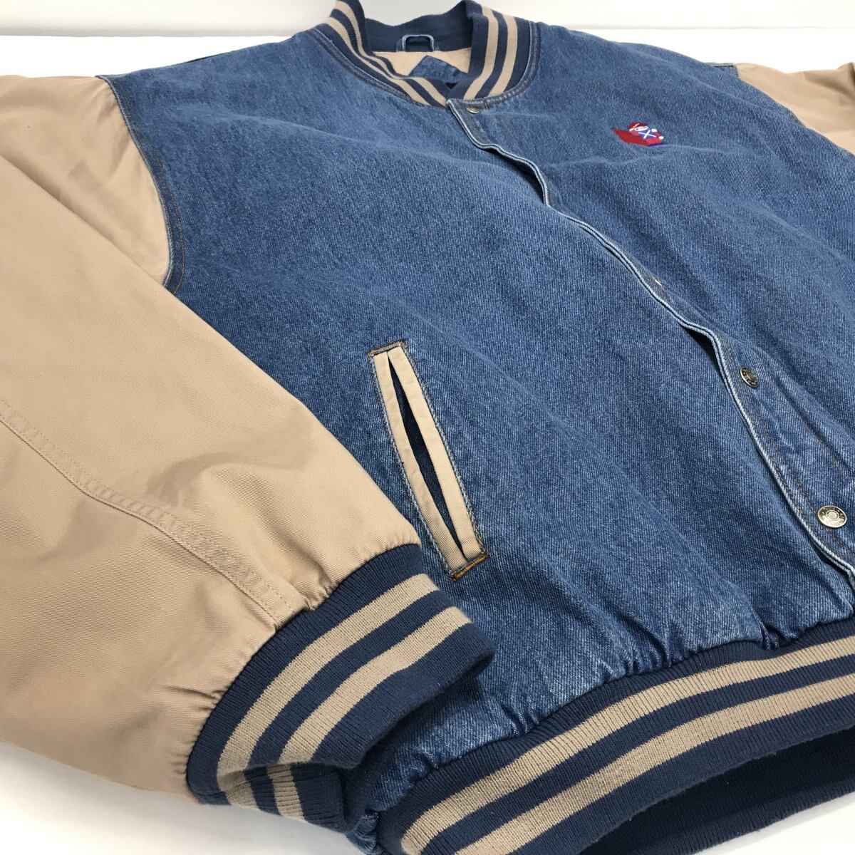 TRIMOUNTAIN トライマウンテン 美品 90年代 超・ビッグサイズ ワンポイント刺繍入り 袖切替 長袖 デニムスタジャン コットンツイルコンビ XXXXXL !! | 古着屋 EAGLEBASE