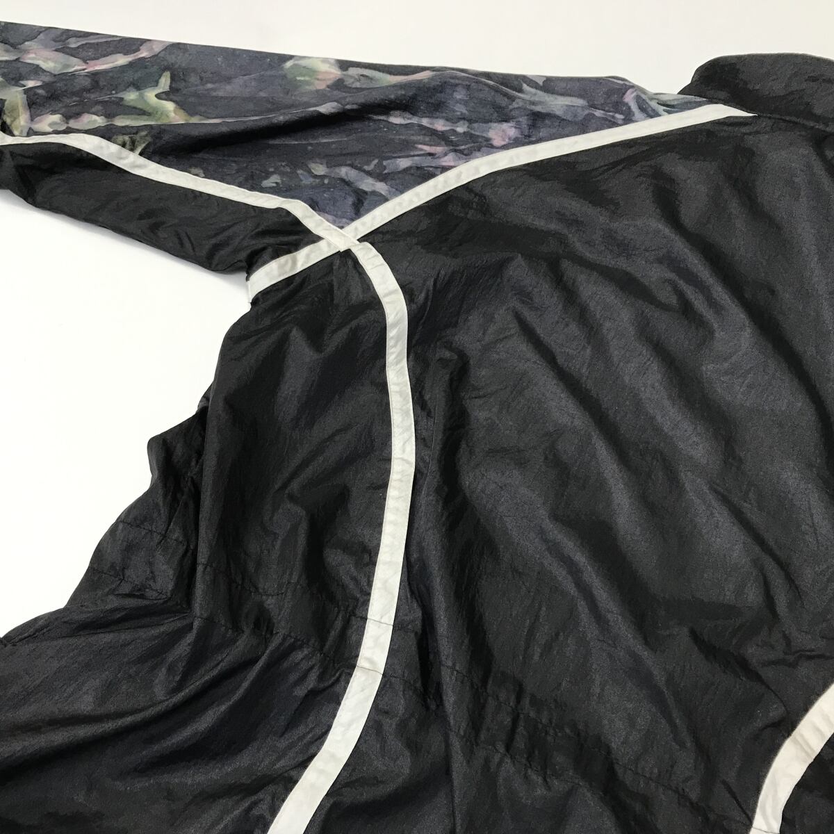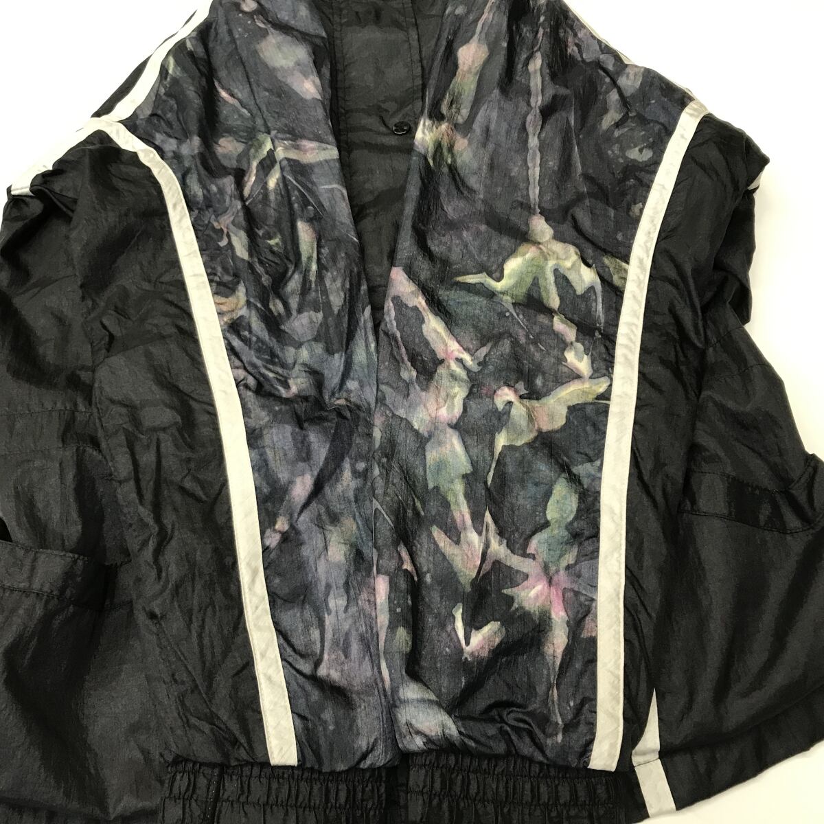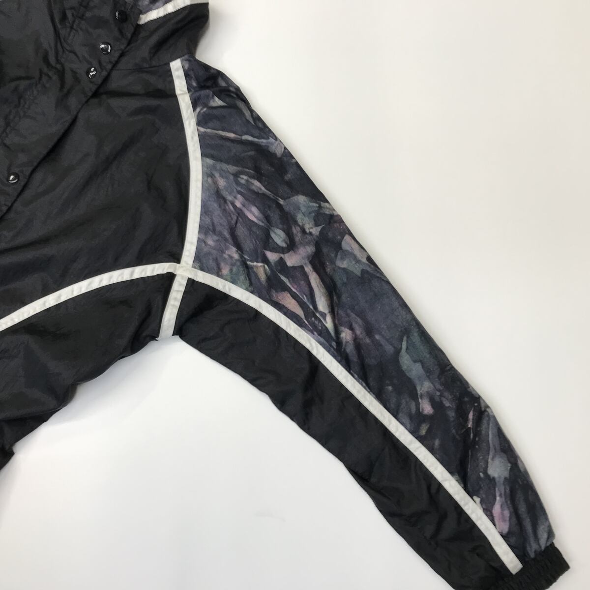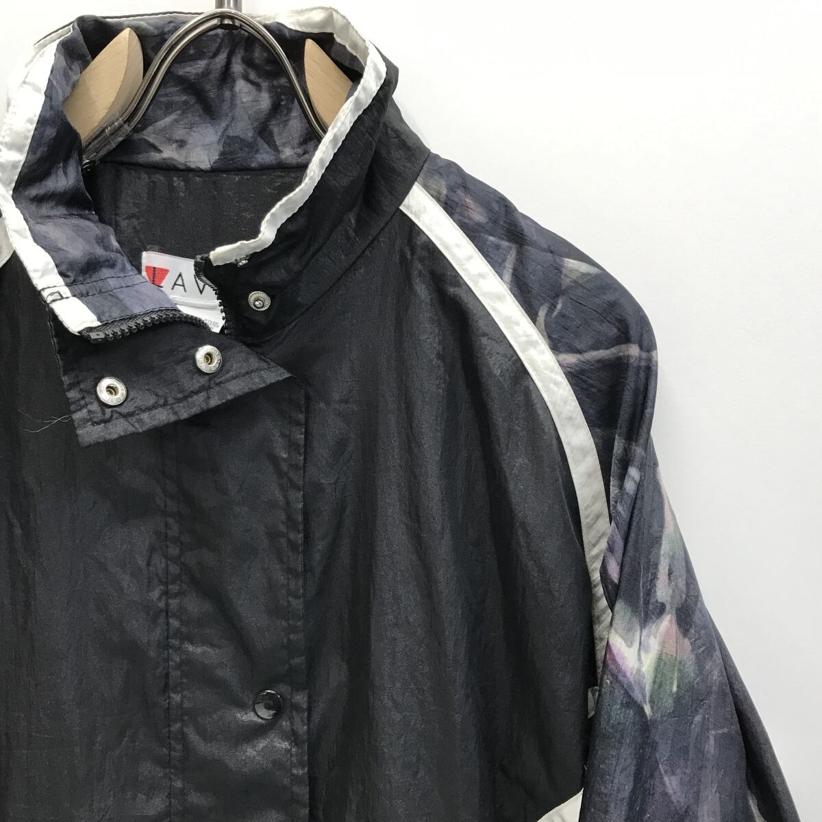 LAVON ラボン 80〜90年代 アート柄切り替え 長袖 ナイロンジップジャケット ナイロンブルゾン ブラック コンビ ML