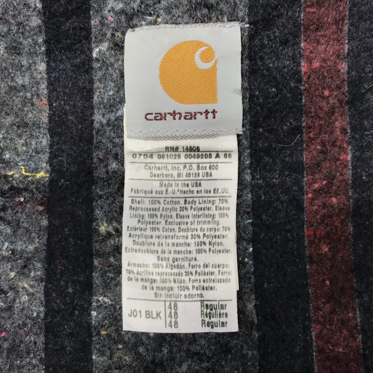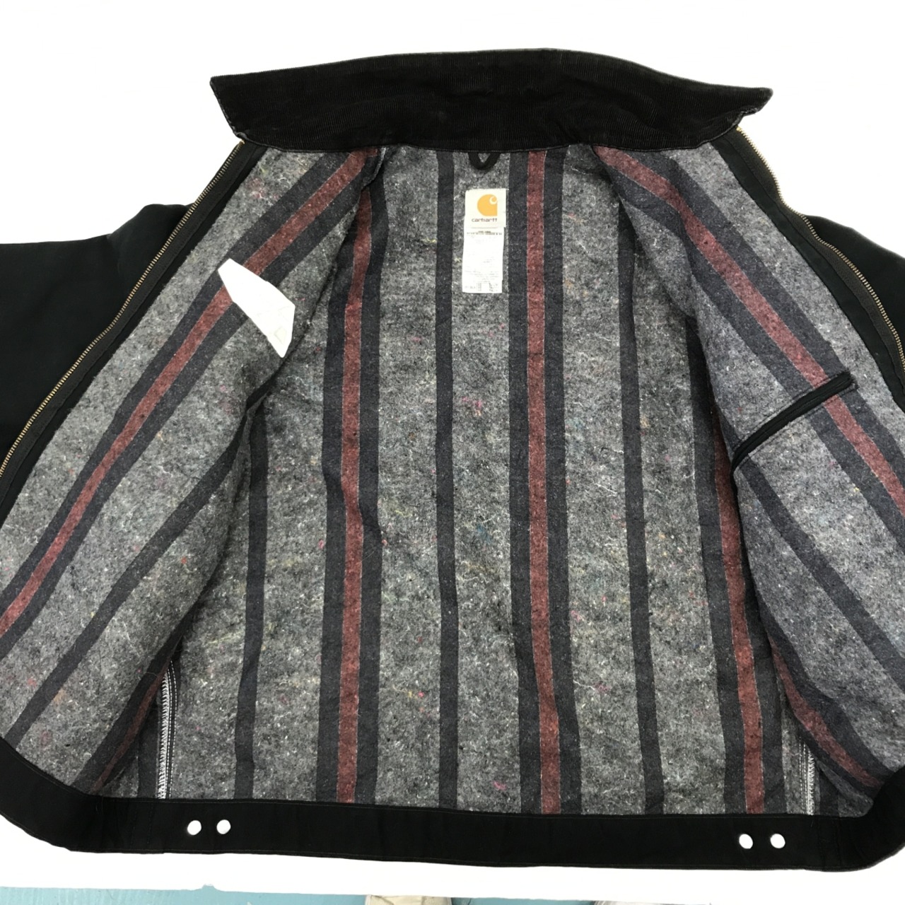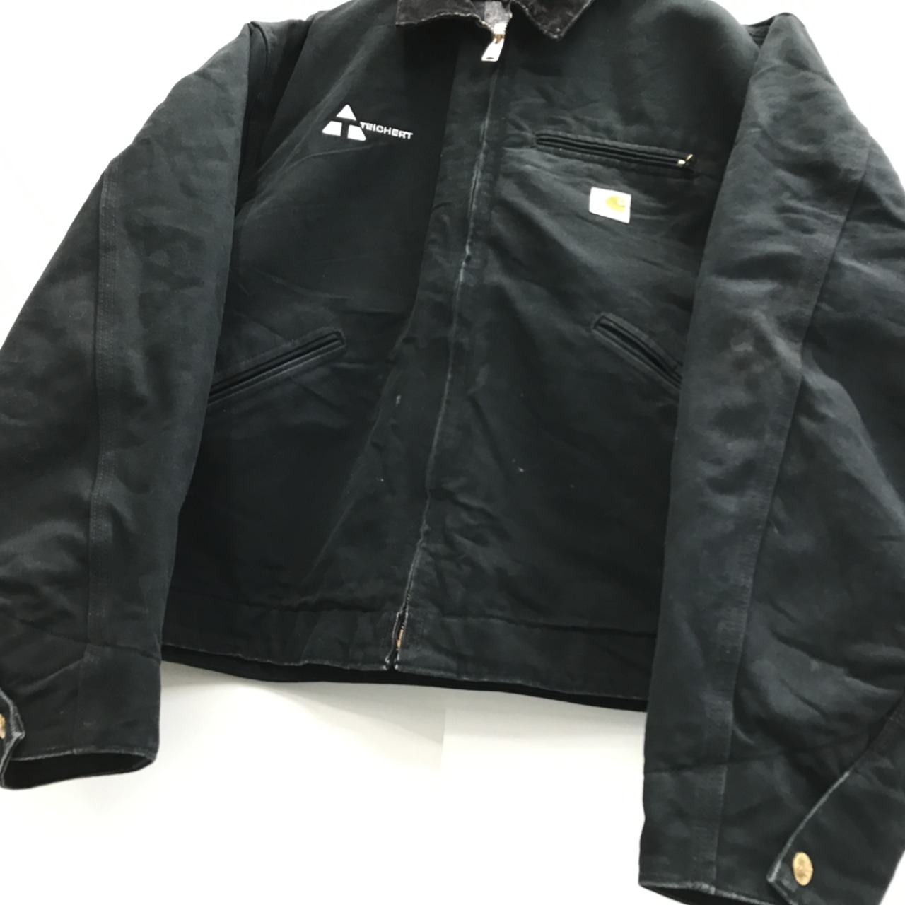 CARHARTT カーハート 90年代 USA製 ダック地 長袖ワークジャケット デトロイトジャケット裏ブランケット 企業刺繍入り ブラック XXXL