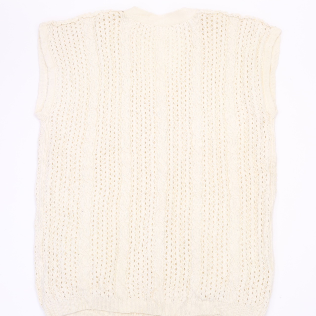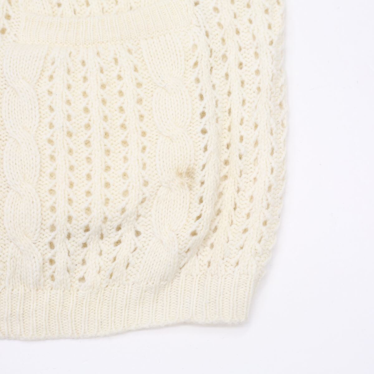 USED ユーズド ニットベスト ジレ アンティークボタン Vネック 透け ホワイト