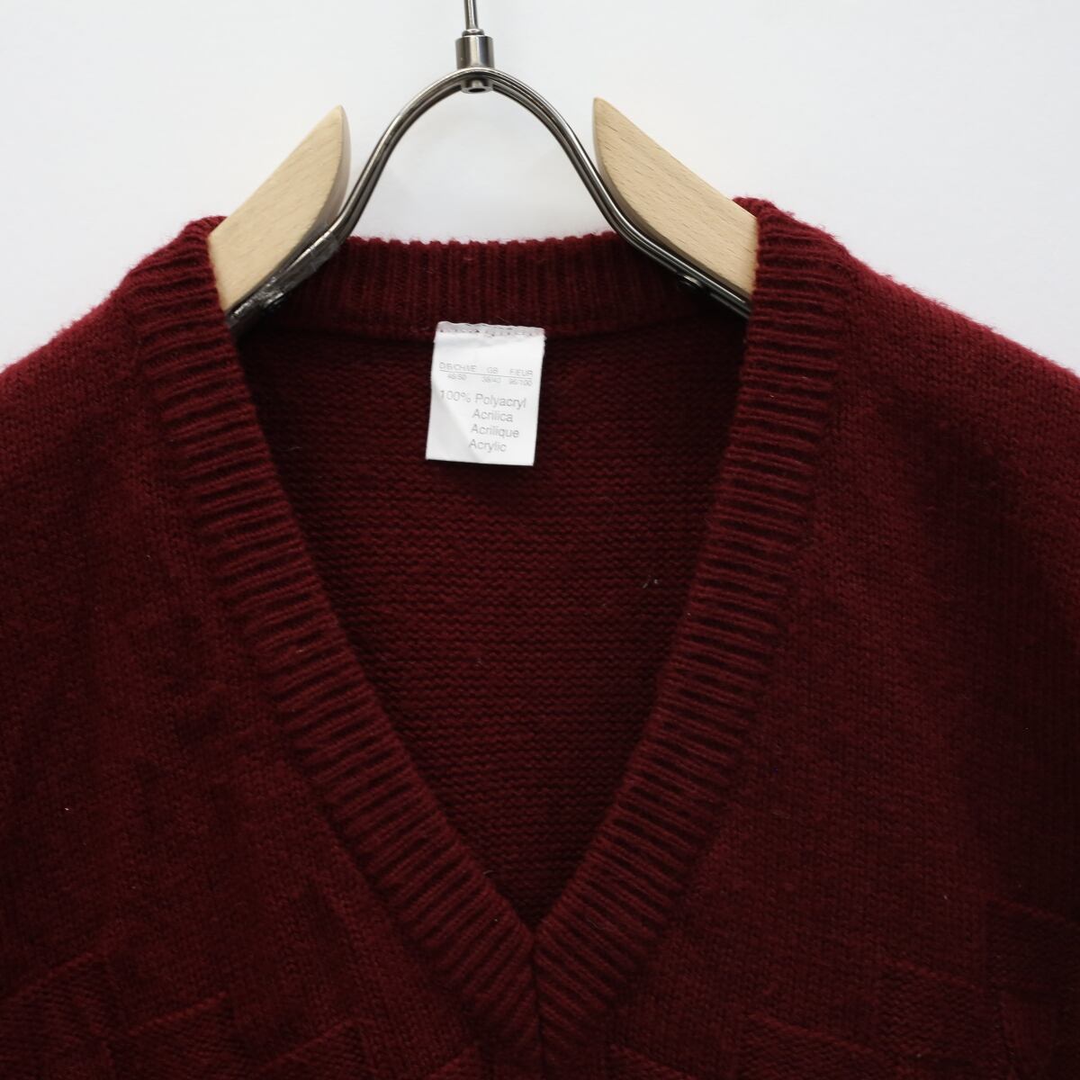 USED ユーズド ニットベスト ジレ Vネック ケーブル編み バーガンディー