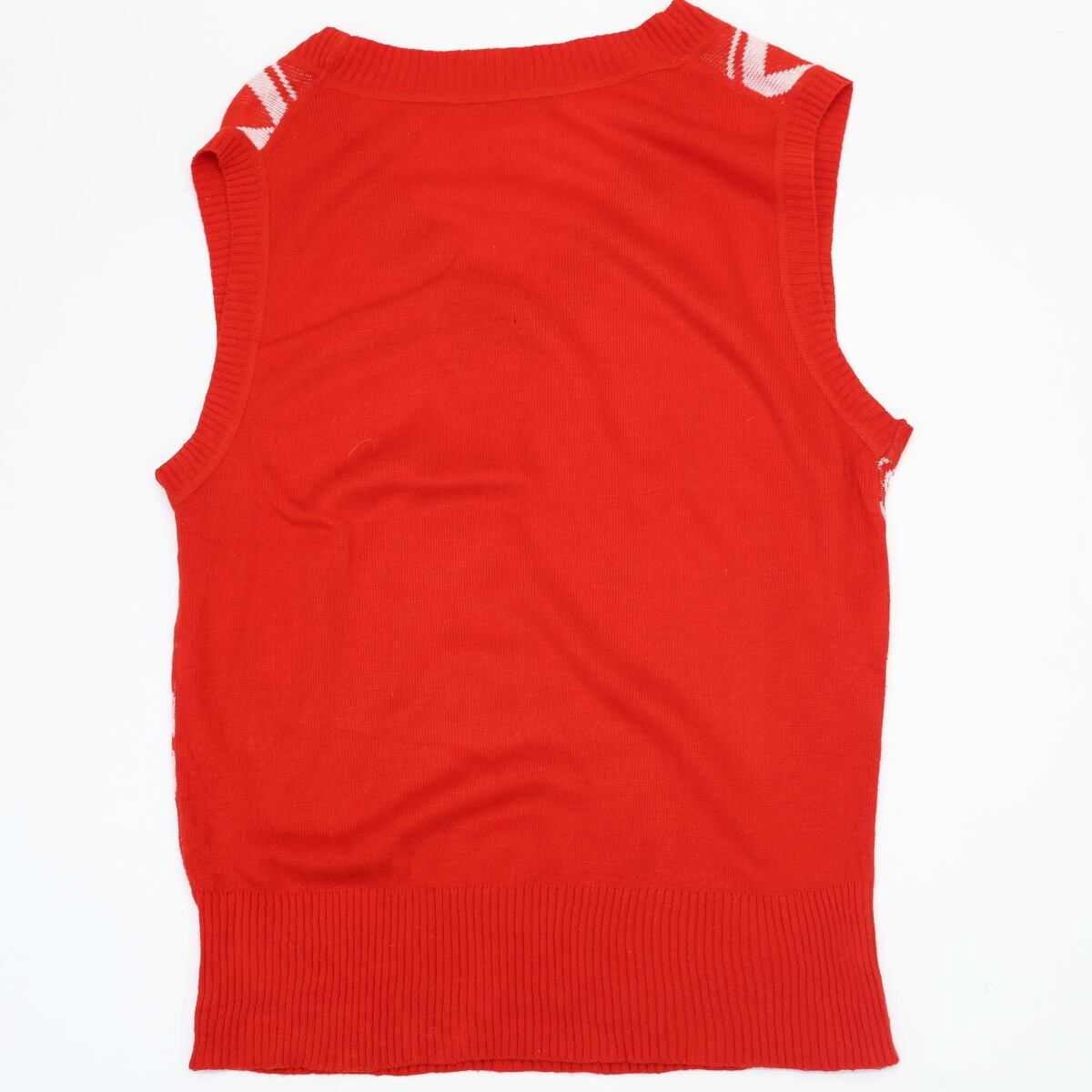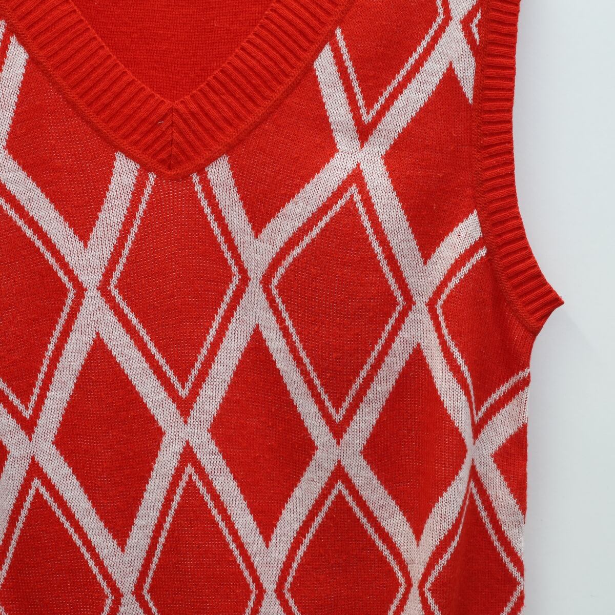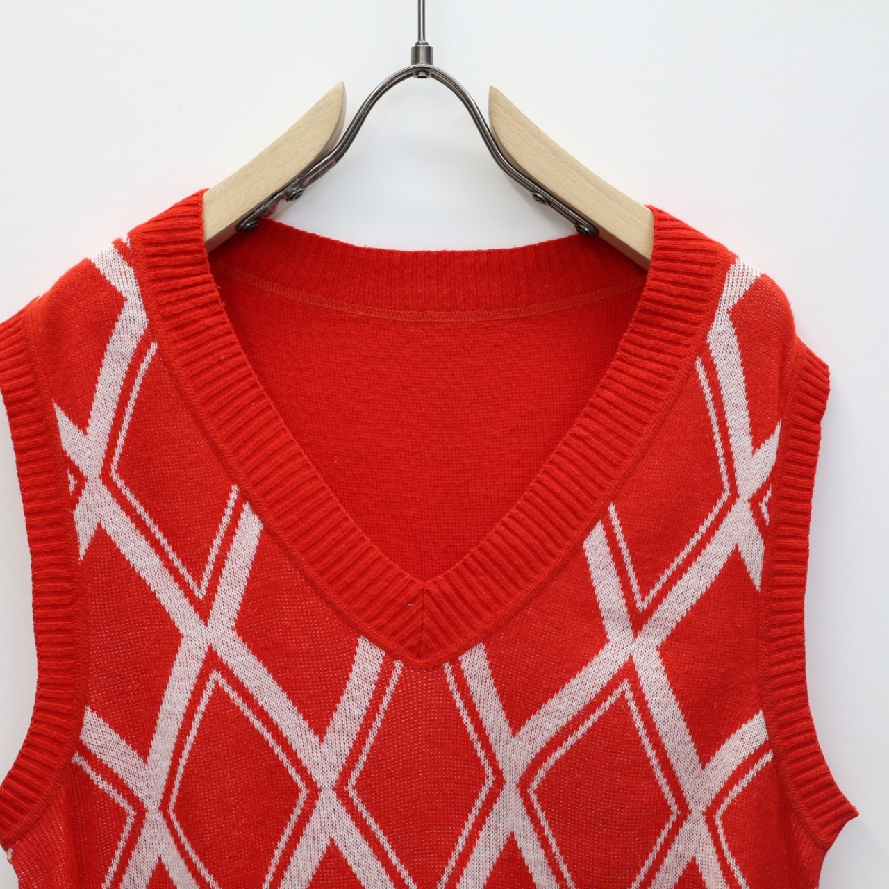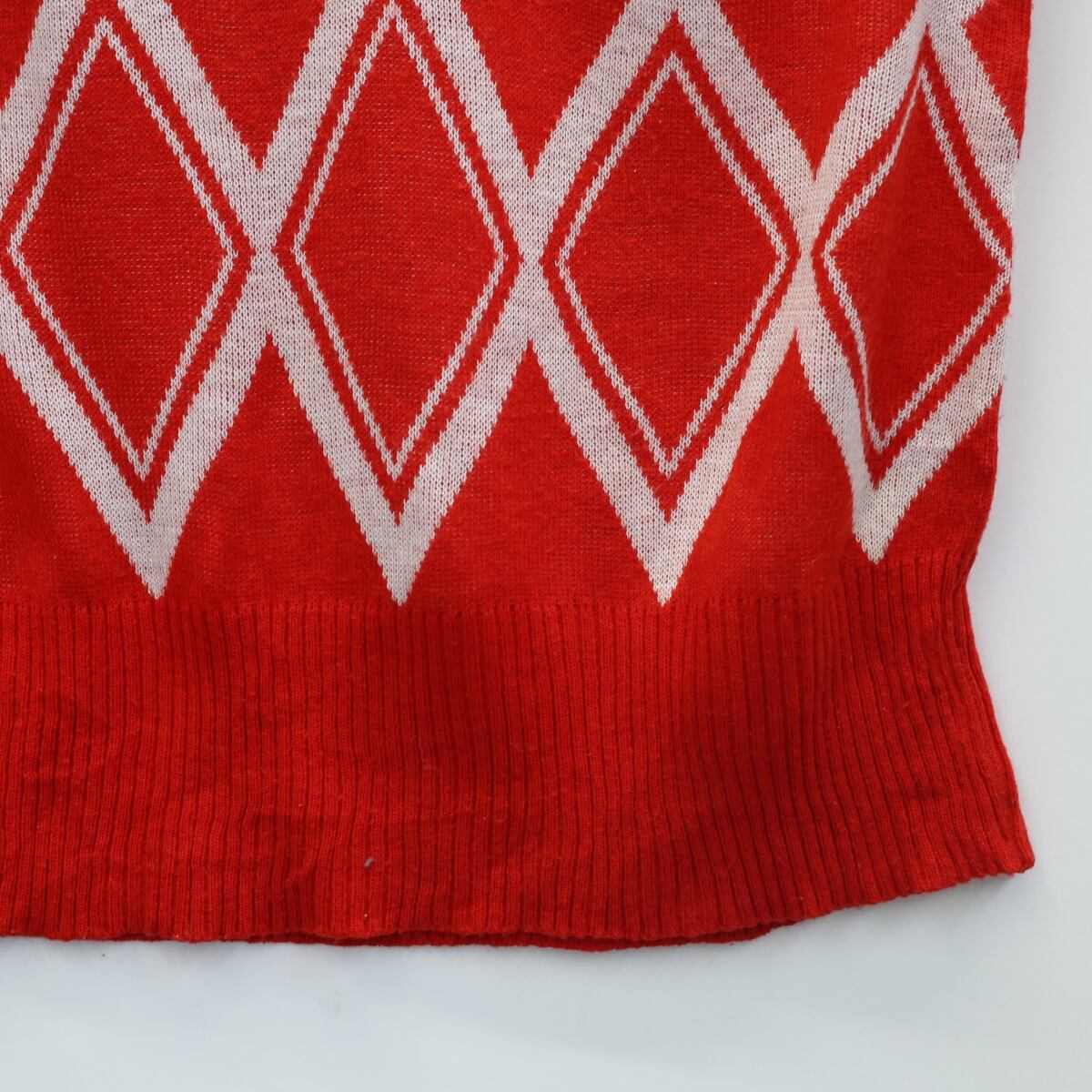 USED ユーズド ニットベスト ジレ Vネック ダイヤパターン 網 ワイヤー オレンジ レトロ レディース