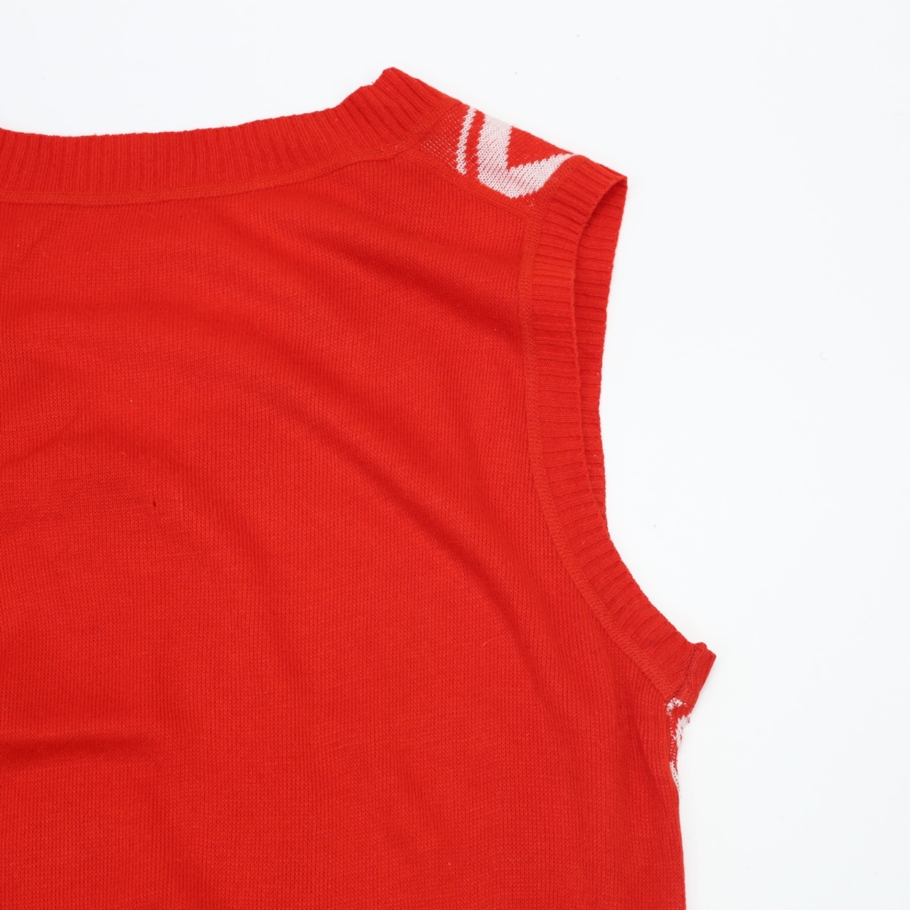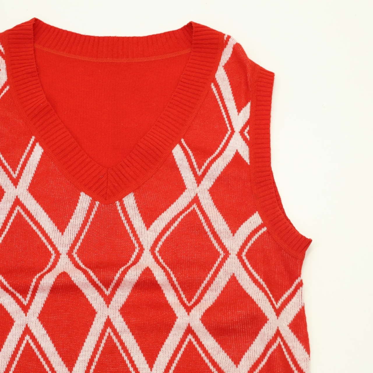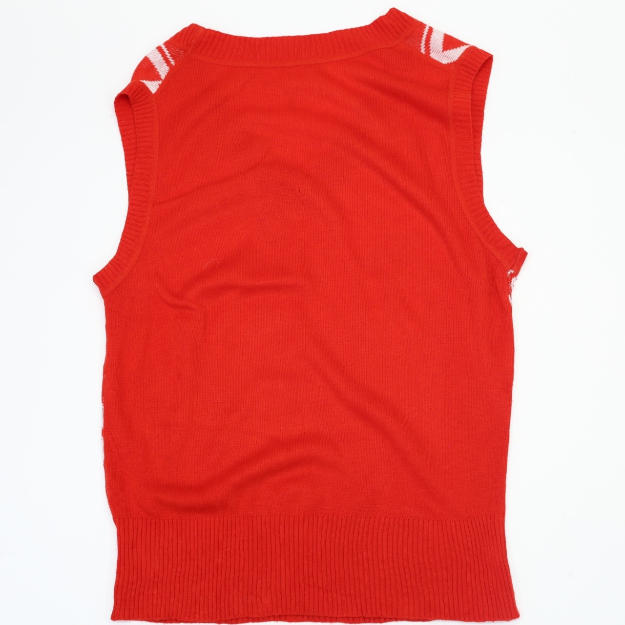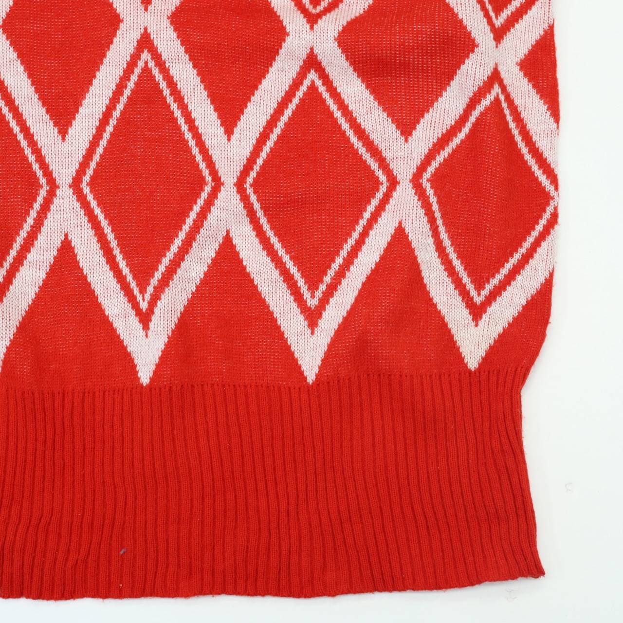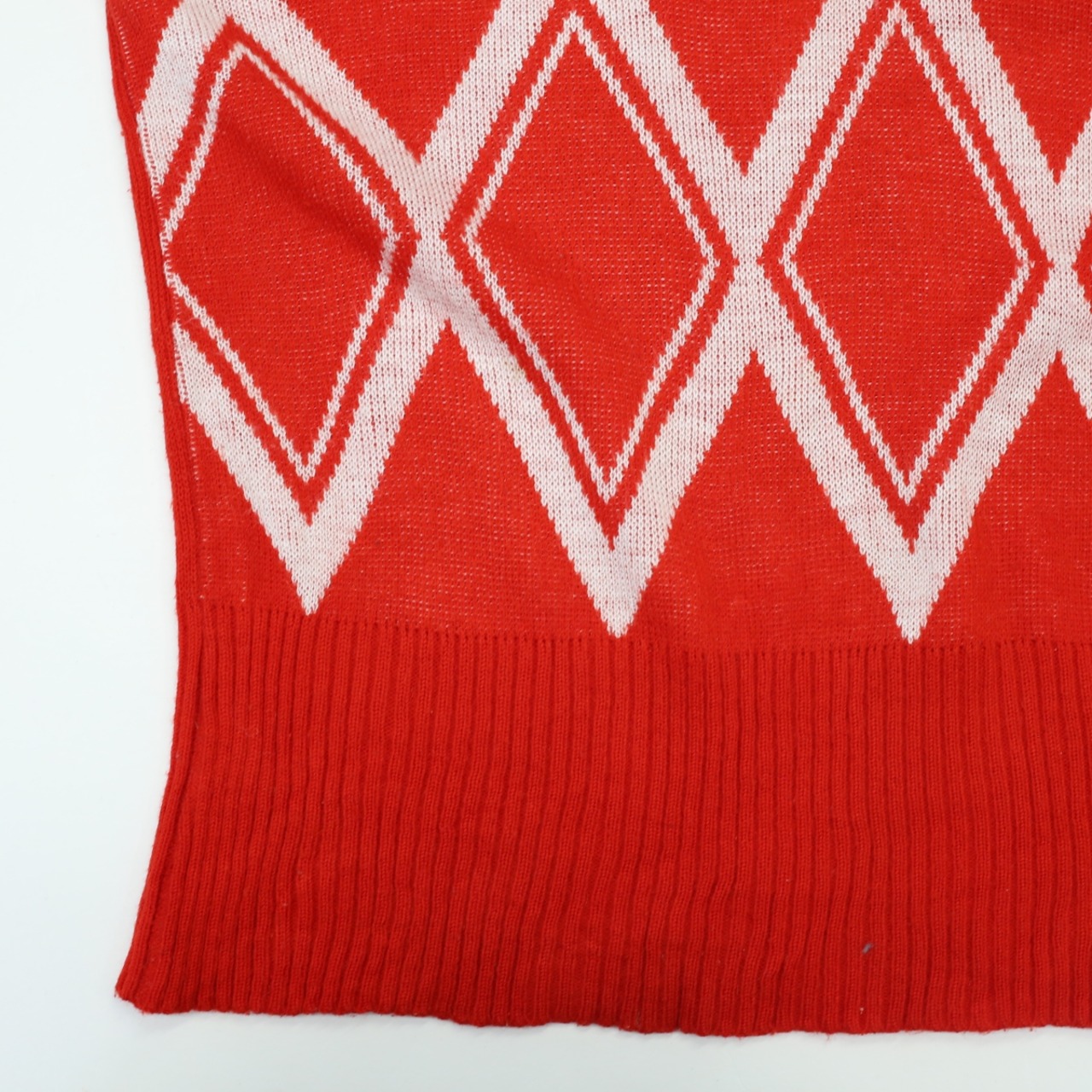 USED ユーズド ニットベスト ジレ Vネック ダイヤパターン 網 ワイヤー オレンジ レトロ レディース