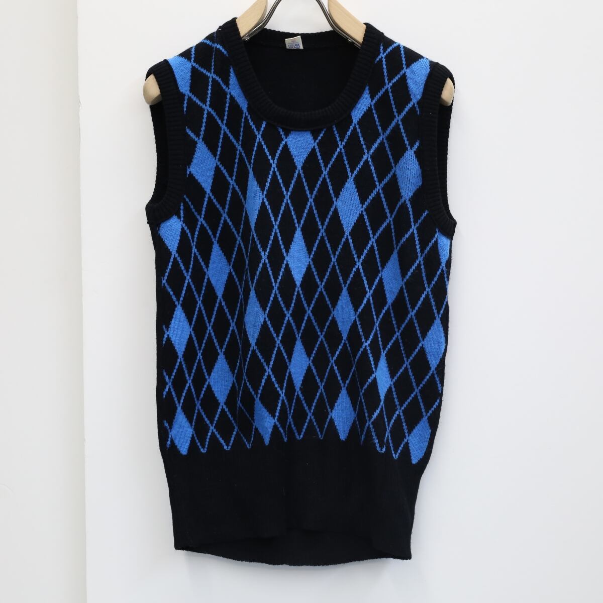 USED ユーズド ニットベスト ジレ クルーネック アーガイル 格子 網 ブラック 52 レディース