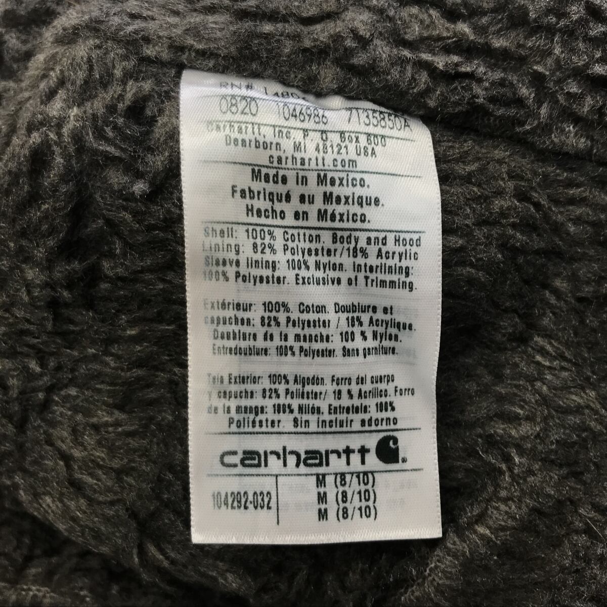 CARHARTT カーハート ダックパーカー 長袖 シェルパ ラインド 104292 グレー ML ボーイズタイプ