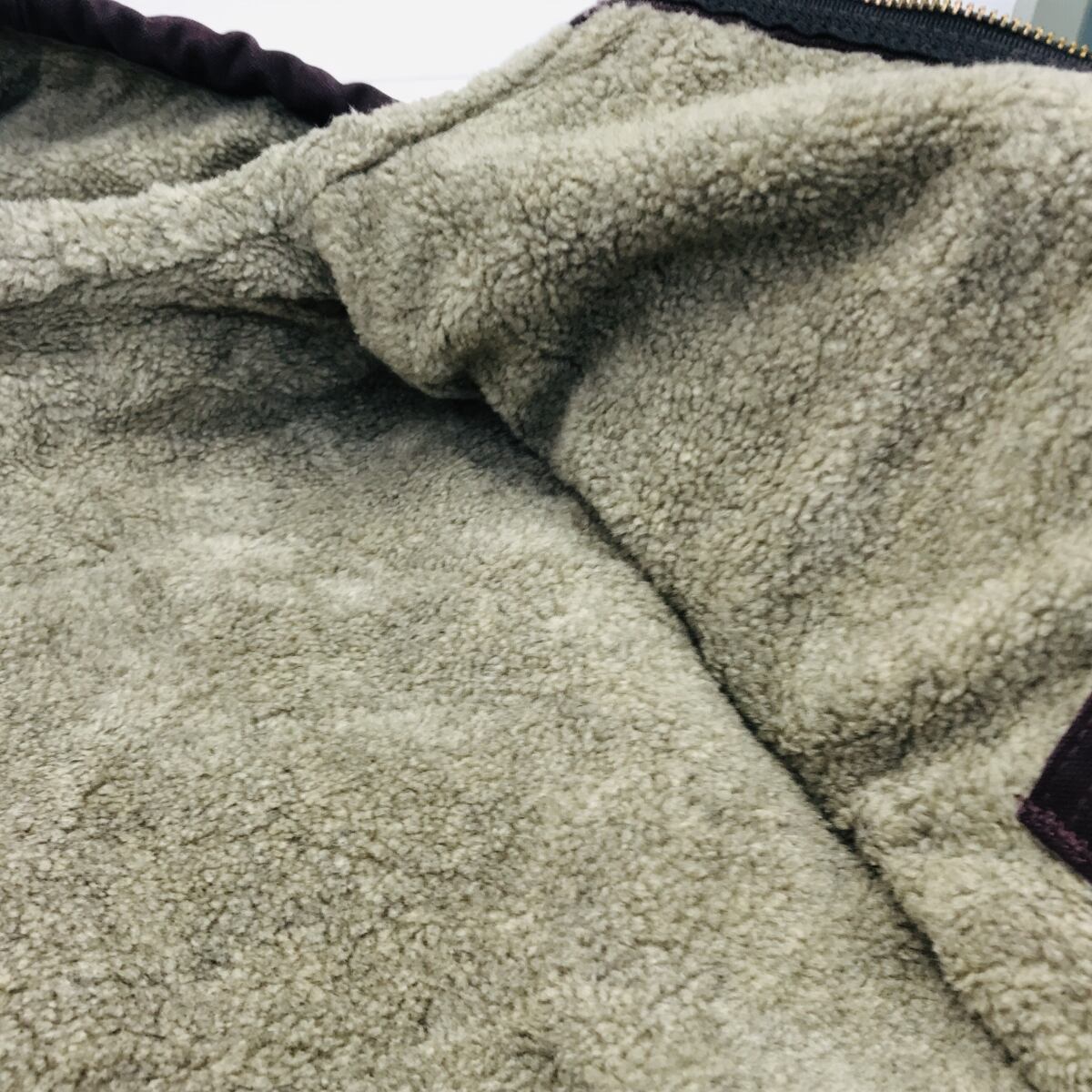 肩にはアクションプリーツ、裏には毛足が短めでしっかり目のボア、