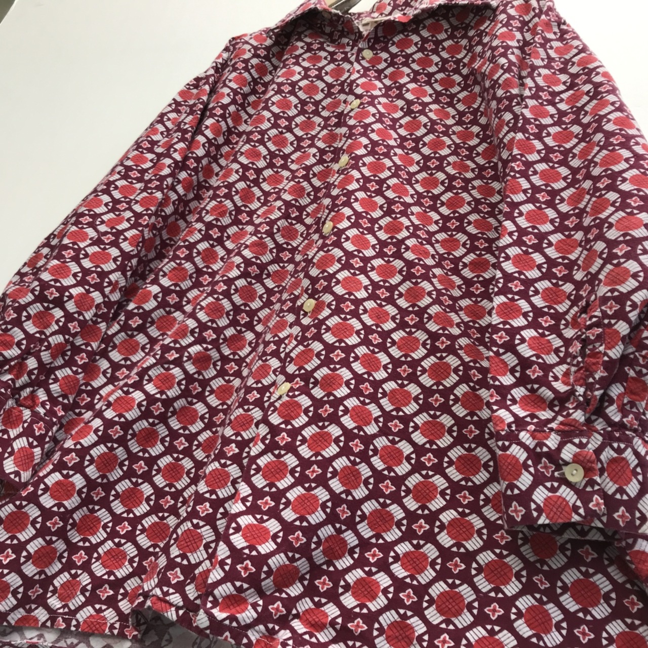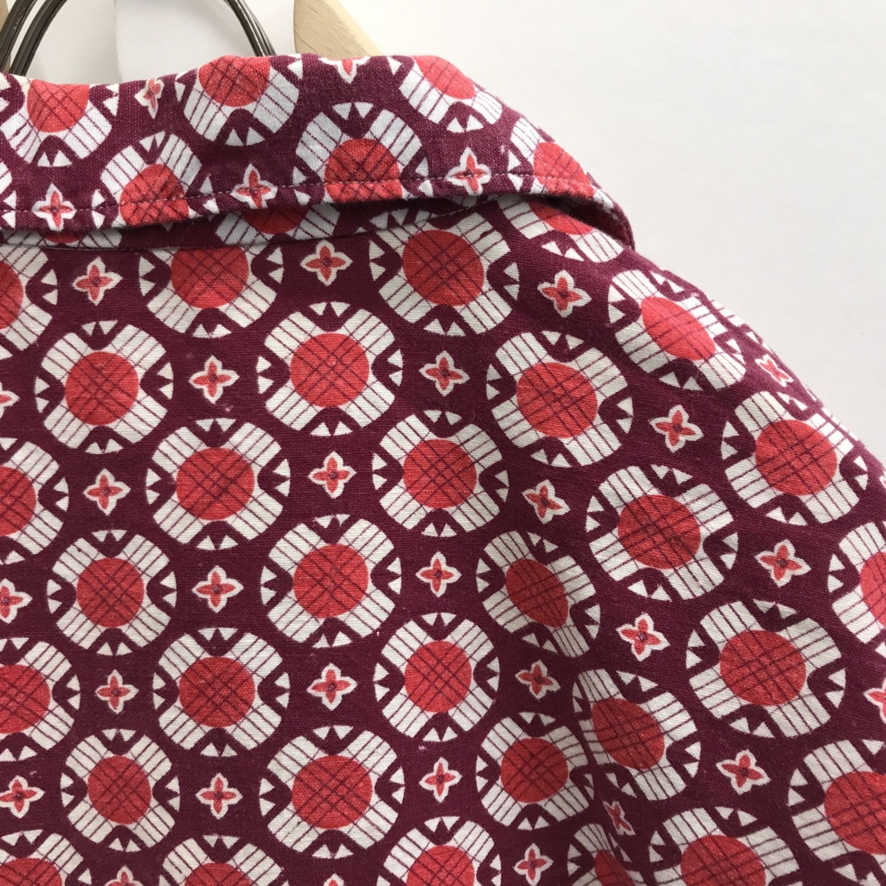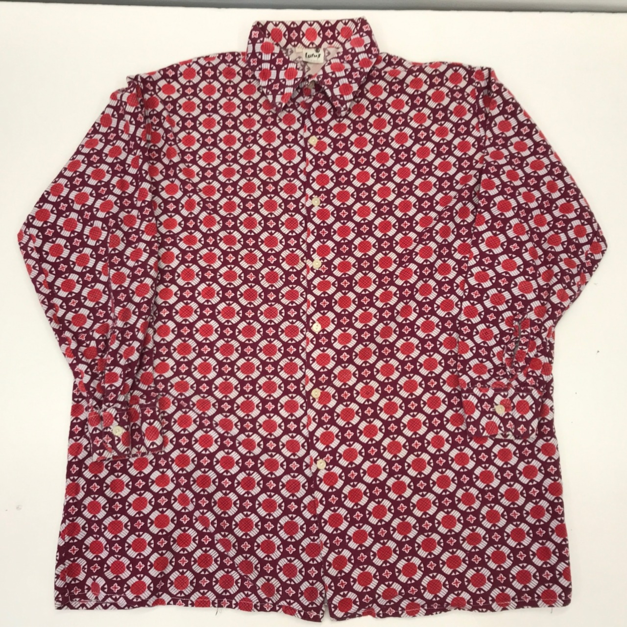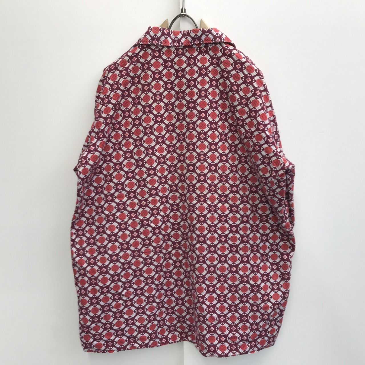 LOTUS ロータス EURO 60〜70年代 ユーロ 長袖 コットン 総柄 幾何学模様 パジャマシャツ ワークシャツ L