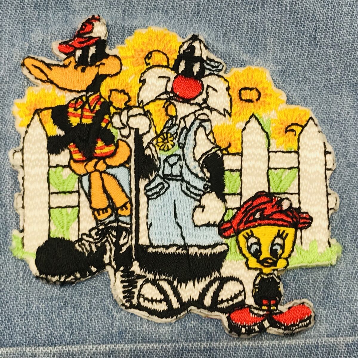 LOONEY TUNES ルーニー・テューンズ 90年代 刺繍とバックプリント 長袖 デニムシャツ シャンブレーブルーXL