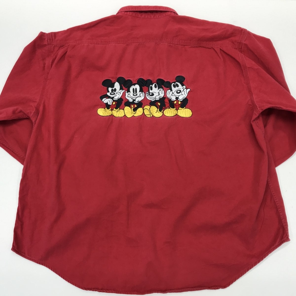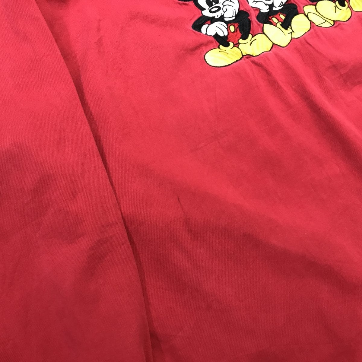 THE DISNEY STORE ディズニーストア 90年代 ミッキー 贅沢 両面刺繍入り 真っ赤な長袖コットンツイルシャツ XXL