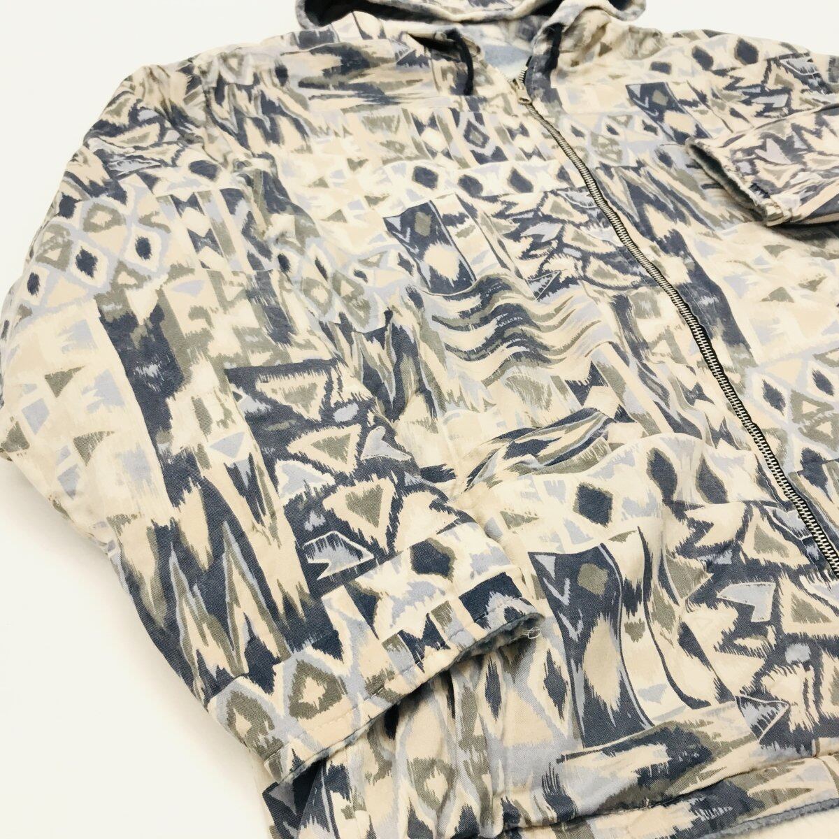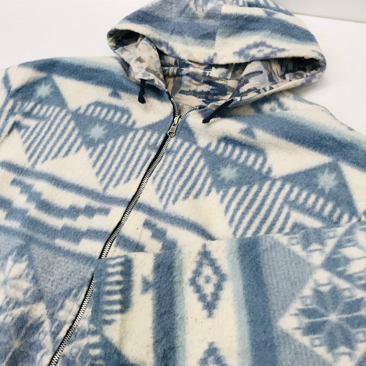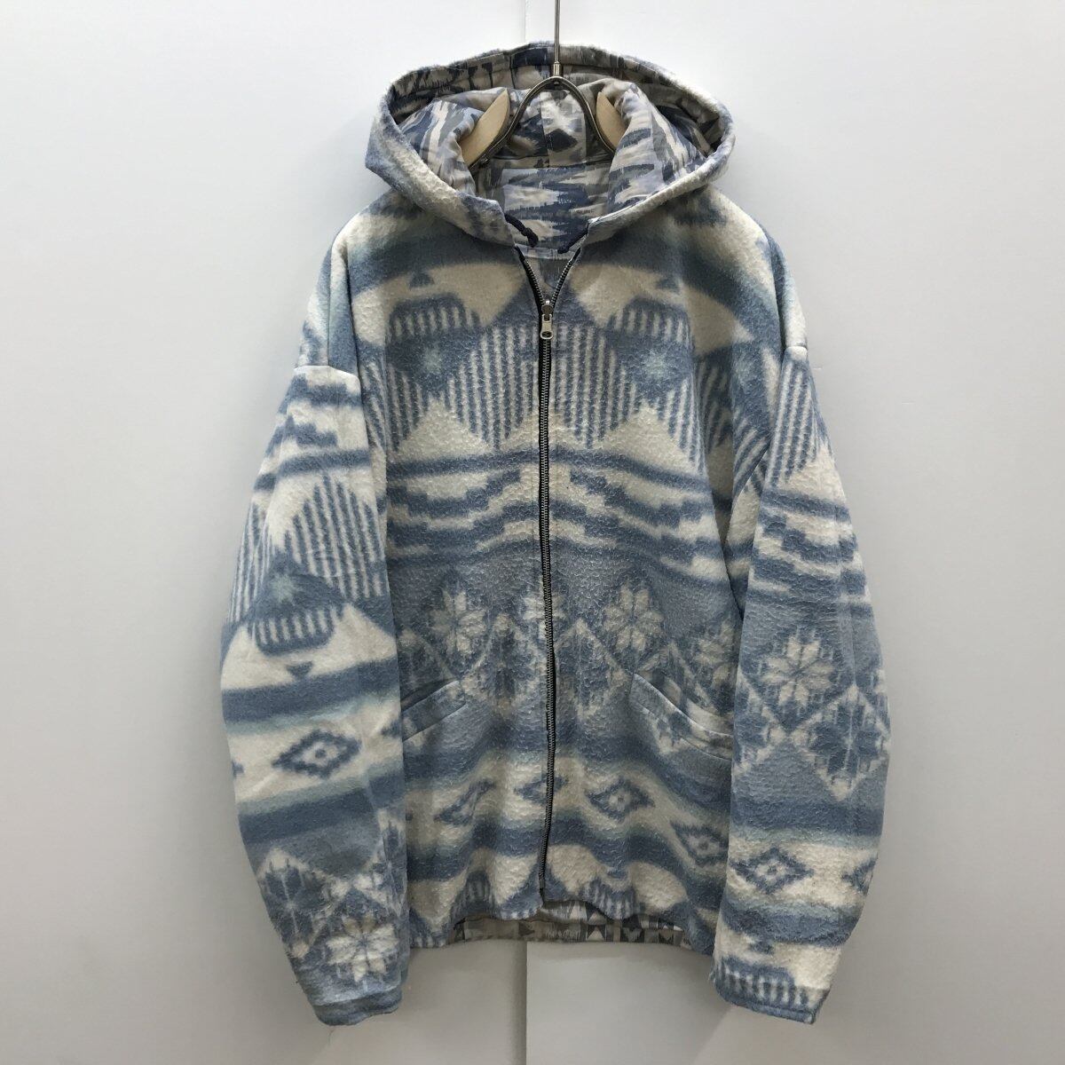 USED ユーズド リバーシブル 総柄 コットン・フリース 長袖 ジップパーカー ネイティブ柄 雪柄 L