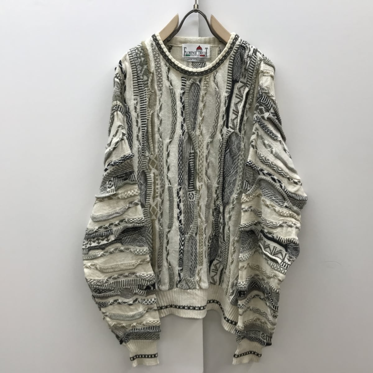 FLORENCE TRICOT フローレンス トリコット 90年代 ブルガリア製 クージー風 総柄 3Dニットコットン アクリルニット セーター オフホワイトミックス マルチカラー XL以上?