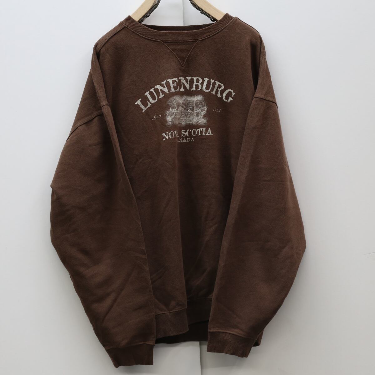 USED ユーズド スウェット トップス 長袖 クルーネック Vガゼット プリント ブラウン XL