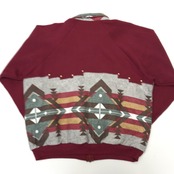 USED 80〜90年代 リメイク 切り替えブランケット付き 長袖 フルジップ スウェット カーディガン ジャージ コチニールレッド XL