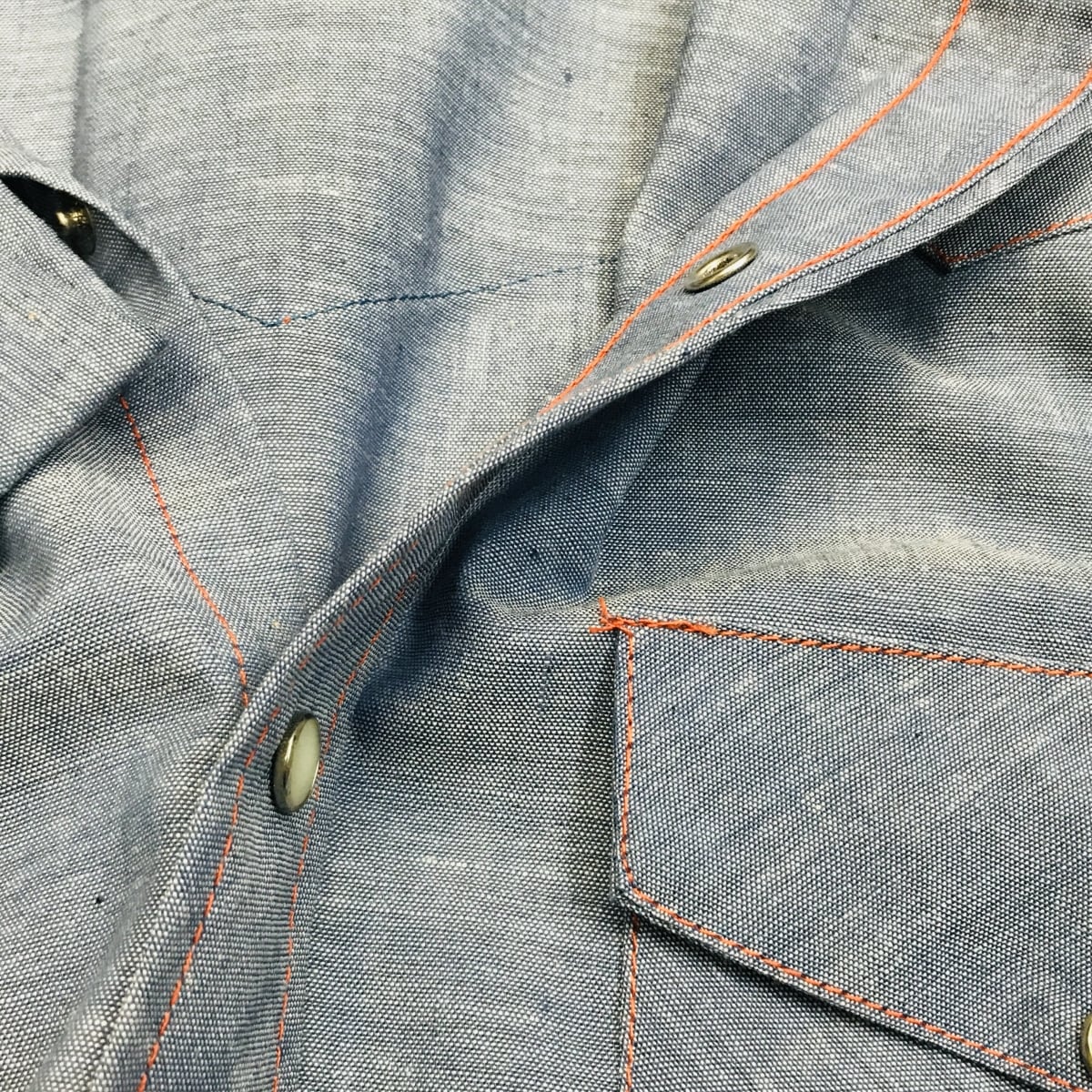 このレトロ感ある色目、素材感、この濃いオレンジ色のステッチが