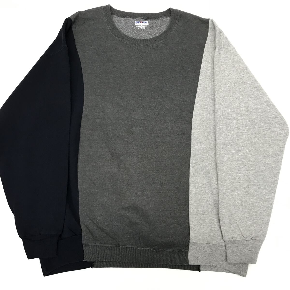 3種類の色の古着のスウェットを組み合わせて作ったリメイクスウェットです