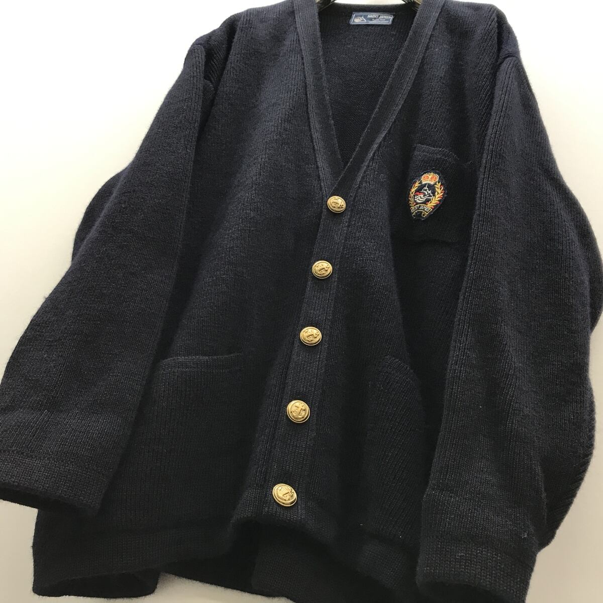 SAINT JAMES セントジェームス フランス製 金ボタン 長袖ヘビーニットカーディガン BLACK XXL