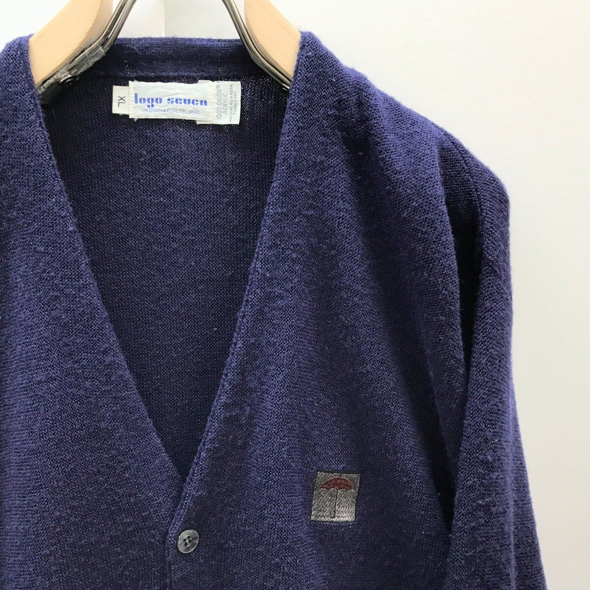 LOGO SCUCA ロゴスクーカ 70〜80年代 長袖アクリルカーディガン ネイビー アンブレラ ワンポイント刺繍入り XXL