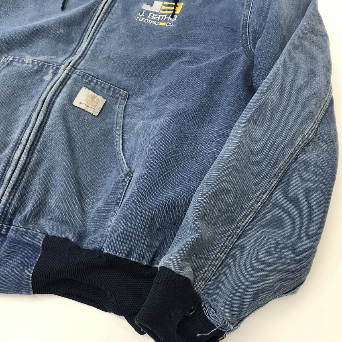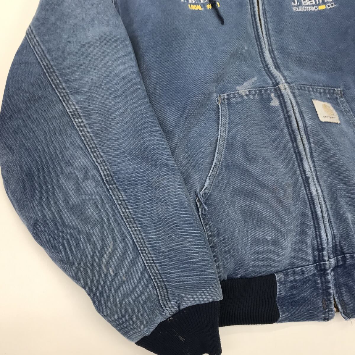 CARHARTT 80〜90年代 USA製 ダックパーカー メッシュライナー アクティブジャケット 企業刺繍入り サックスブルー 2XL以上〜 長袖