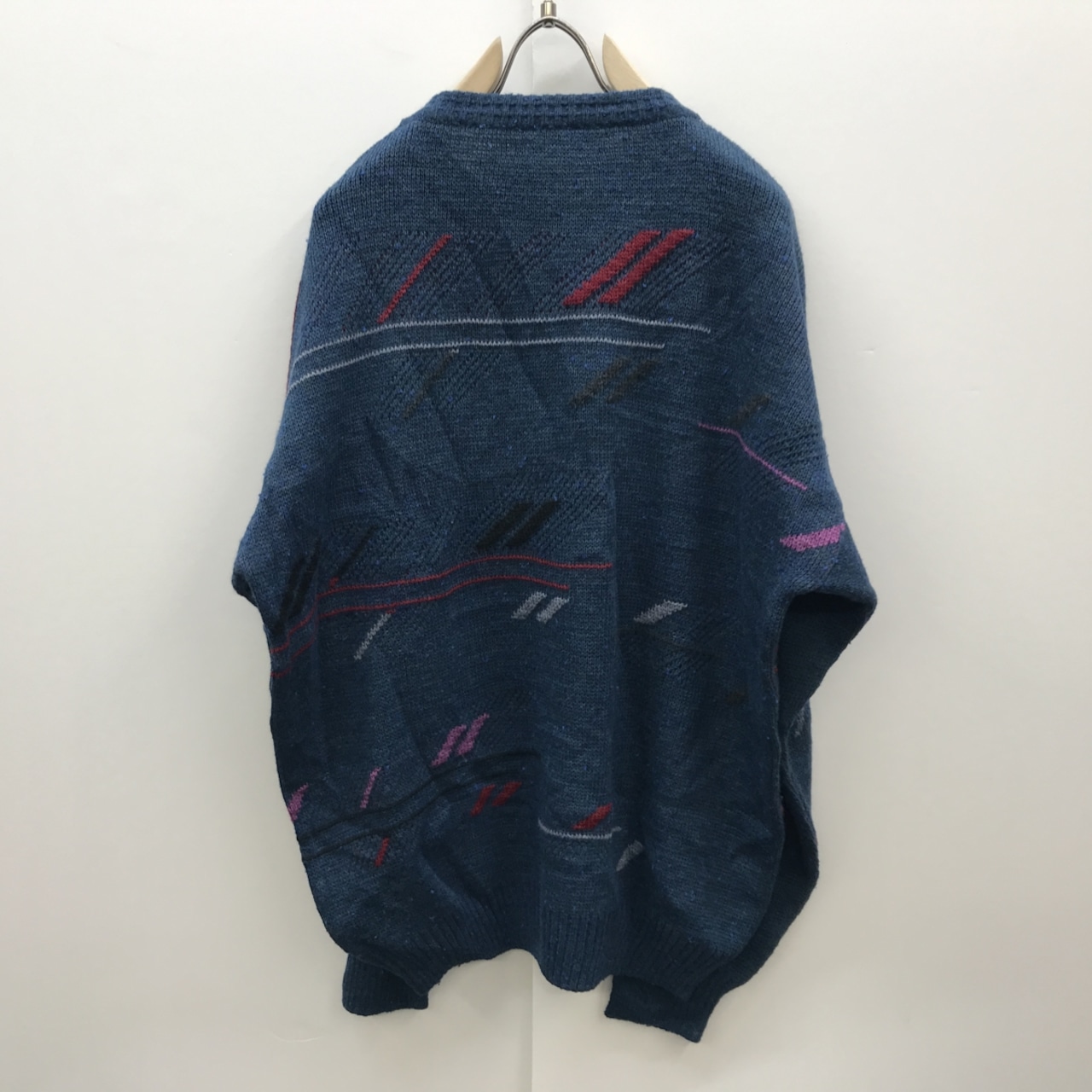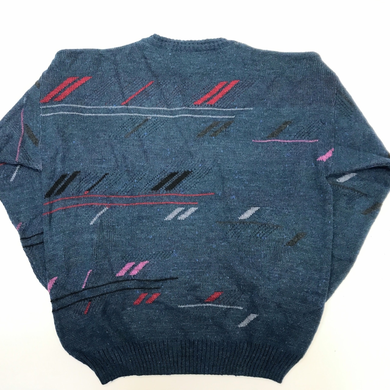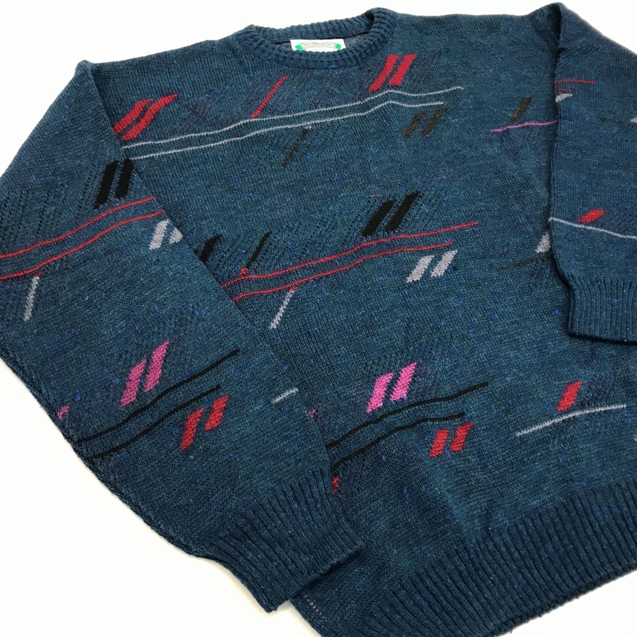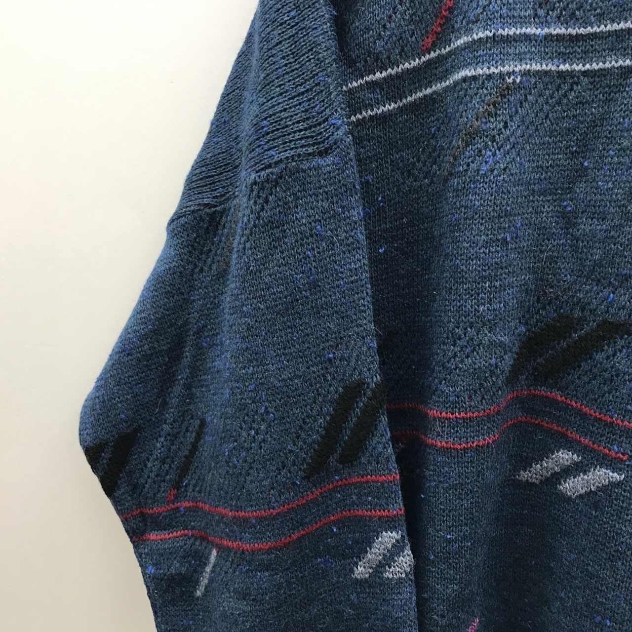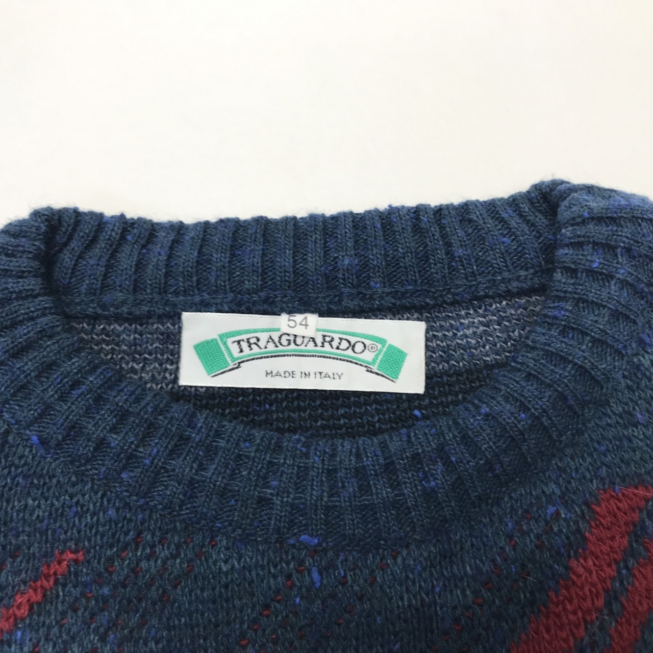 TRAGUARDO トラガード 90年代 イタリア製 ポップ 80's デザインニット ユーロセーター ブルーグリーン 長袖 XL