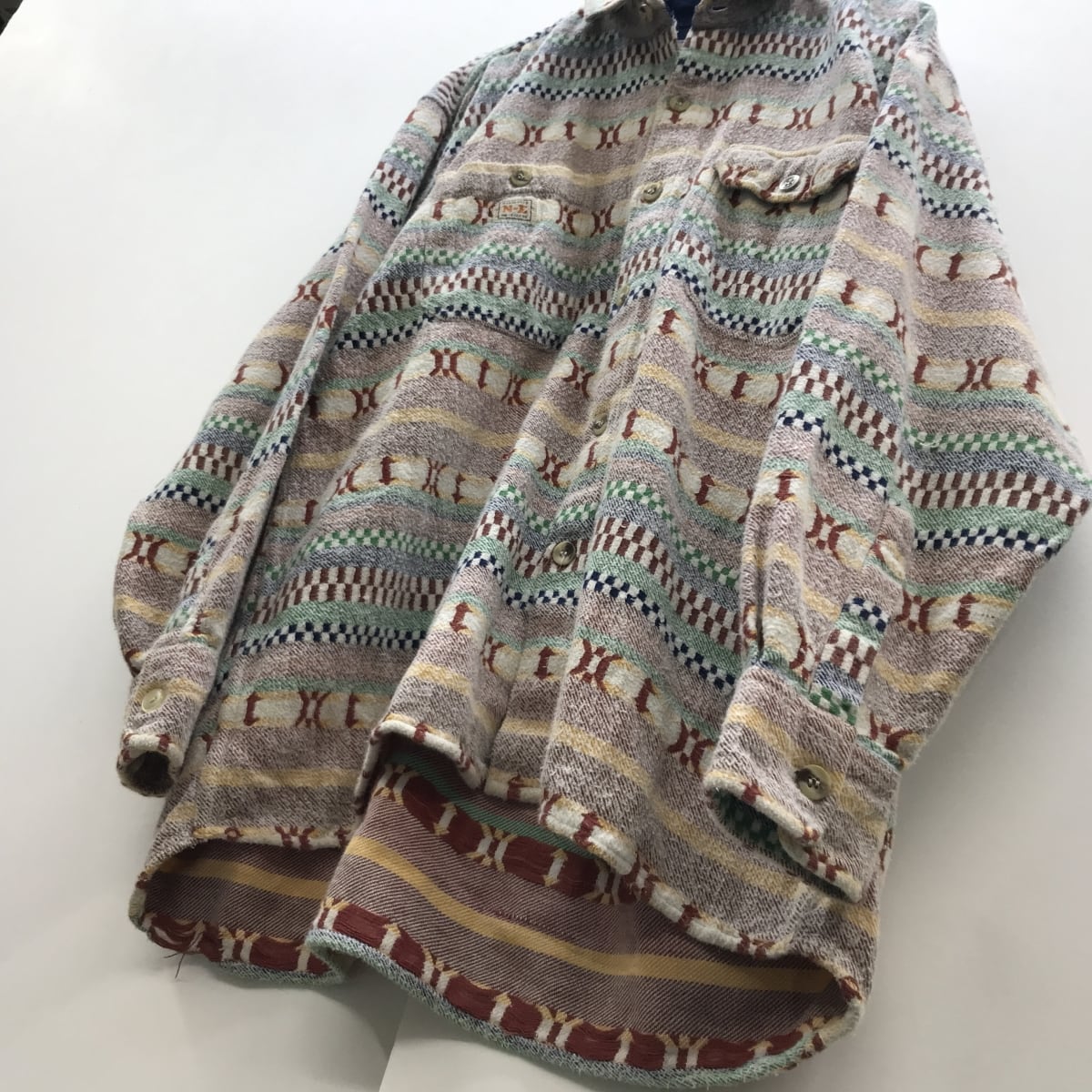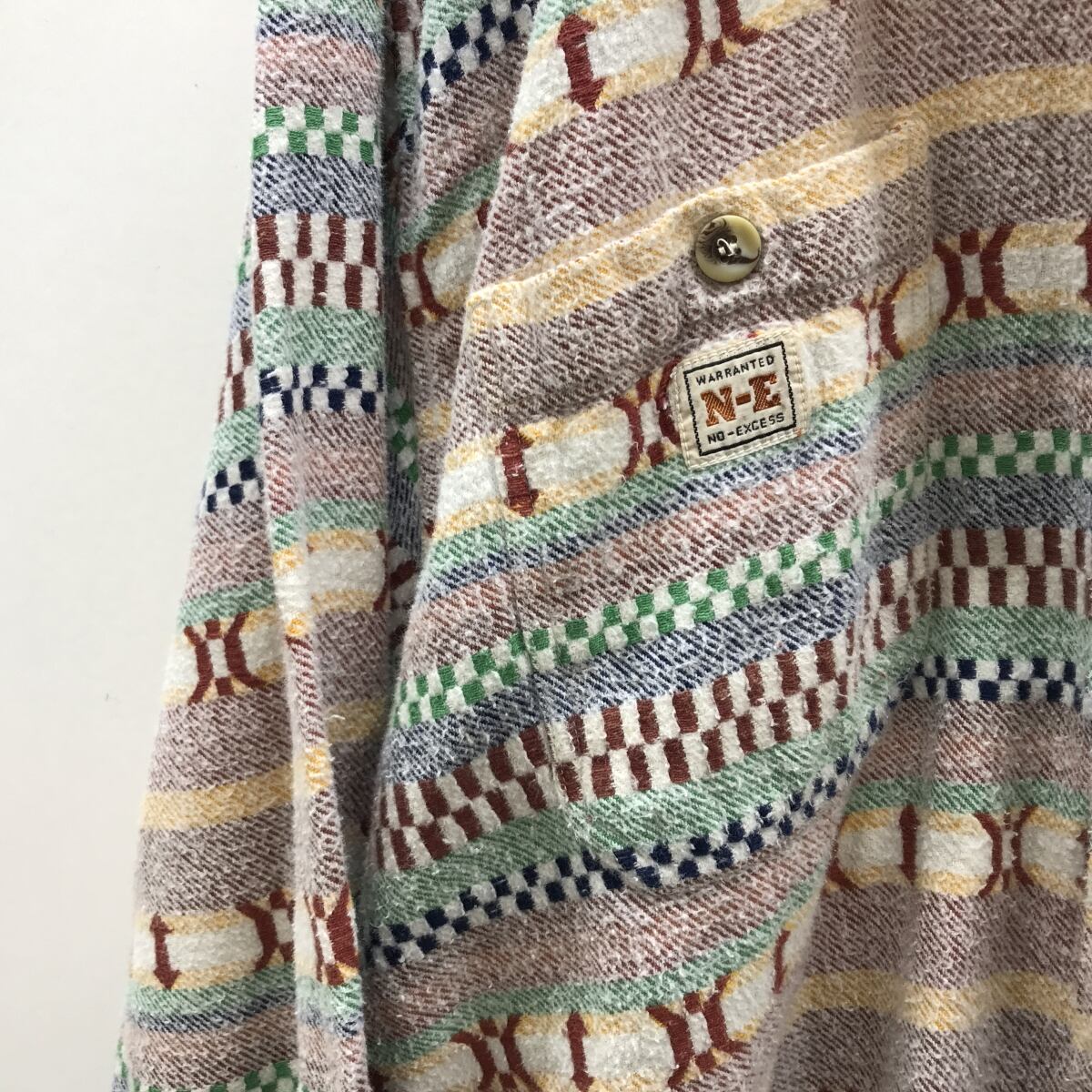 NOEXCESS ノーエクセス 80〜90年代 ブランケット風 起毛ネルシャツ ボーダー総柄 カラフル XL 長袖