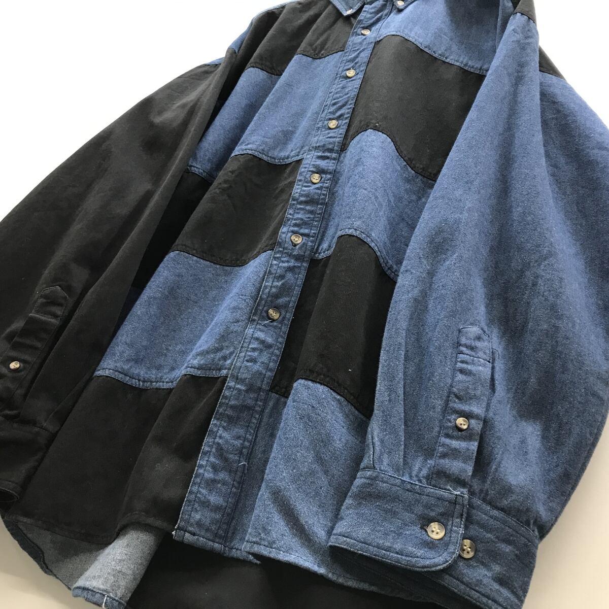 STEFANO MAN ステファノ 90年代 デニムボタンダウンシャツ 切り替えクレイジーパターン ビッグシャツ 長袖 XXL