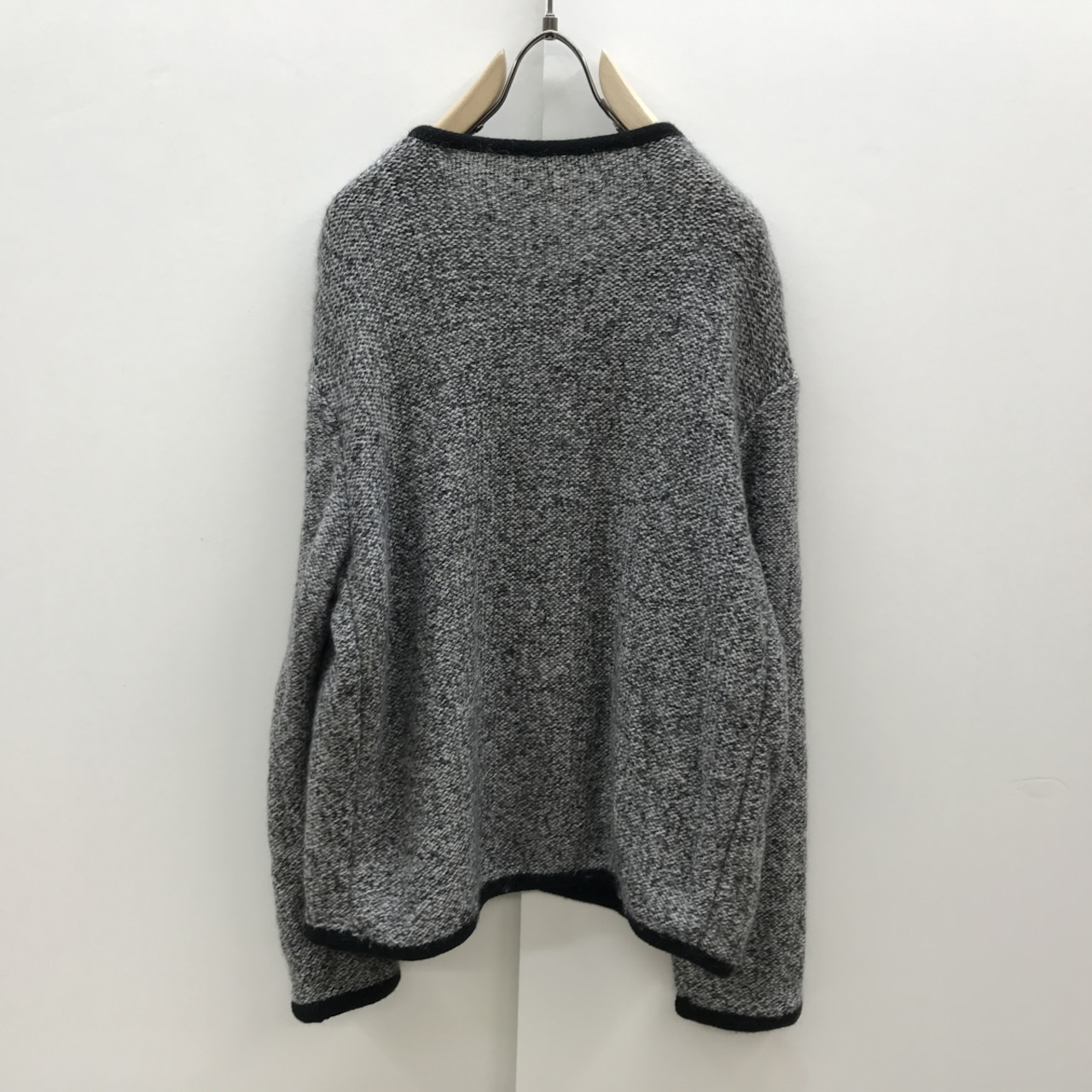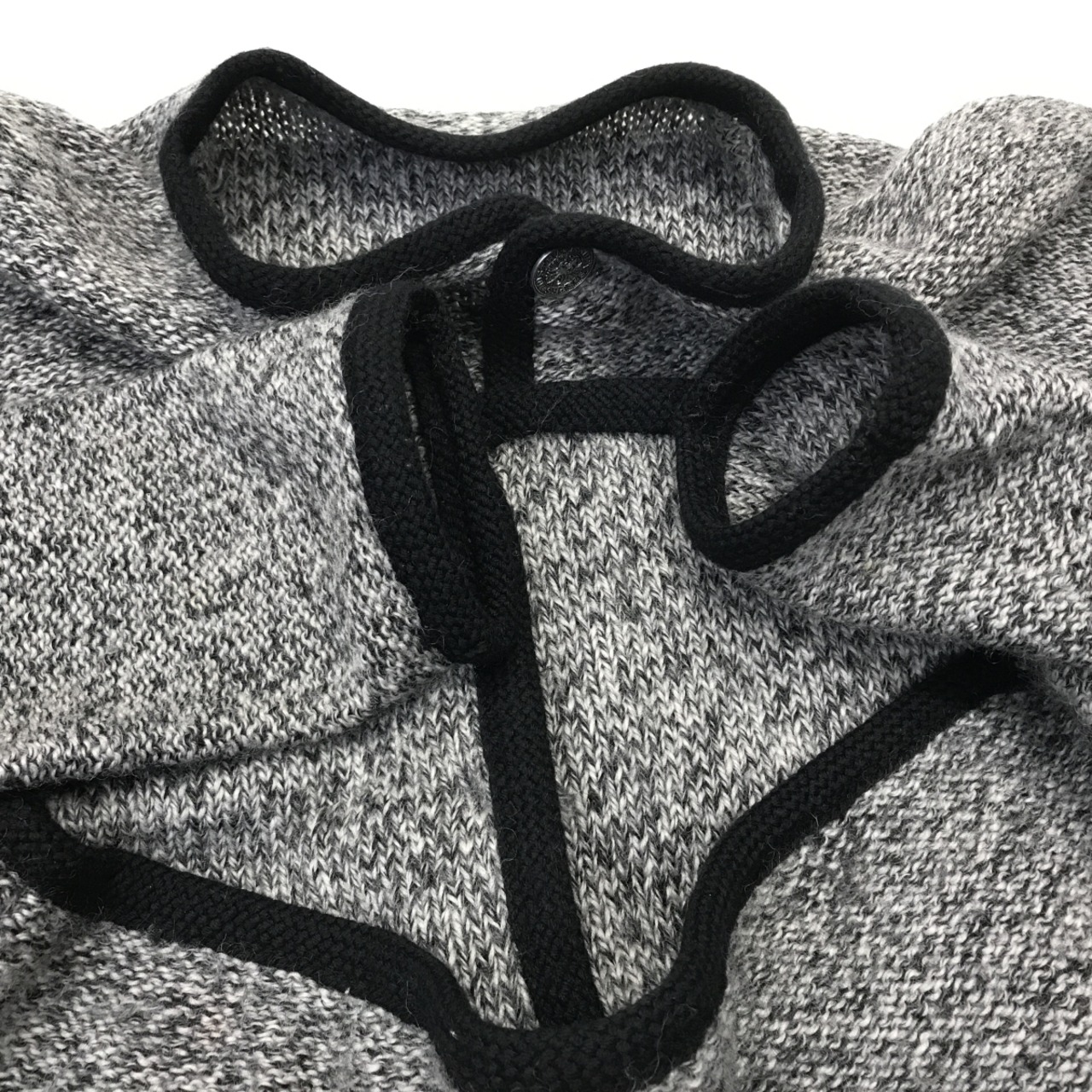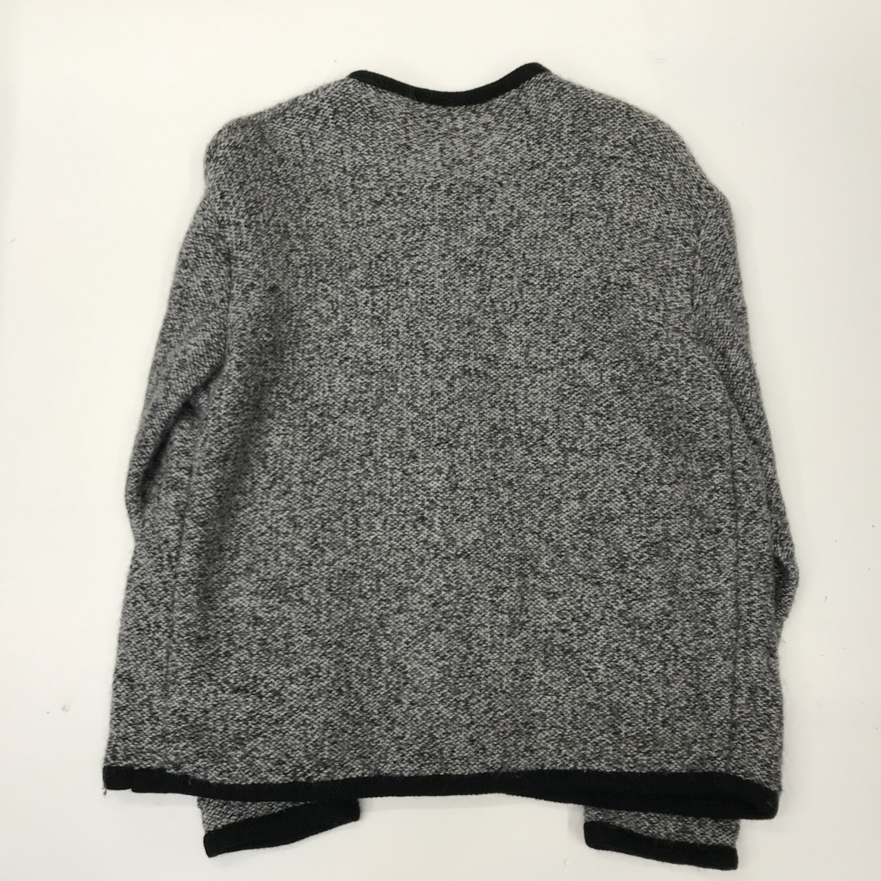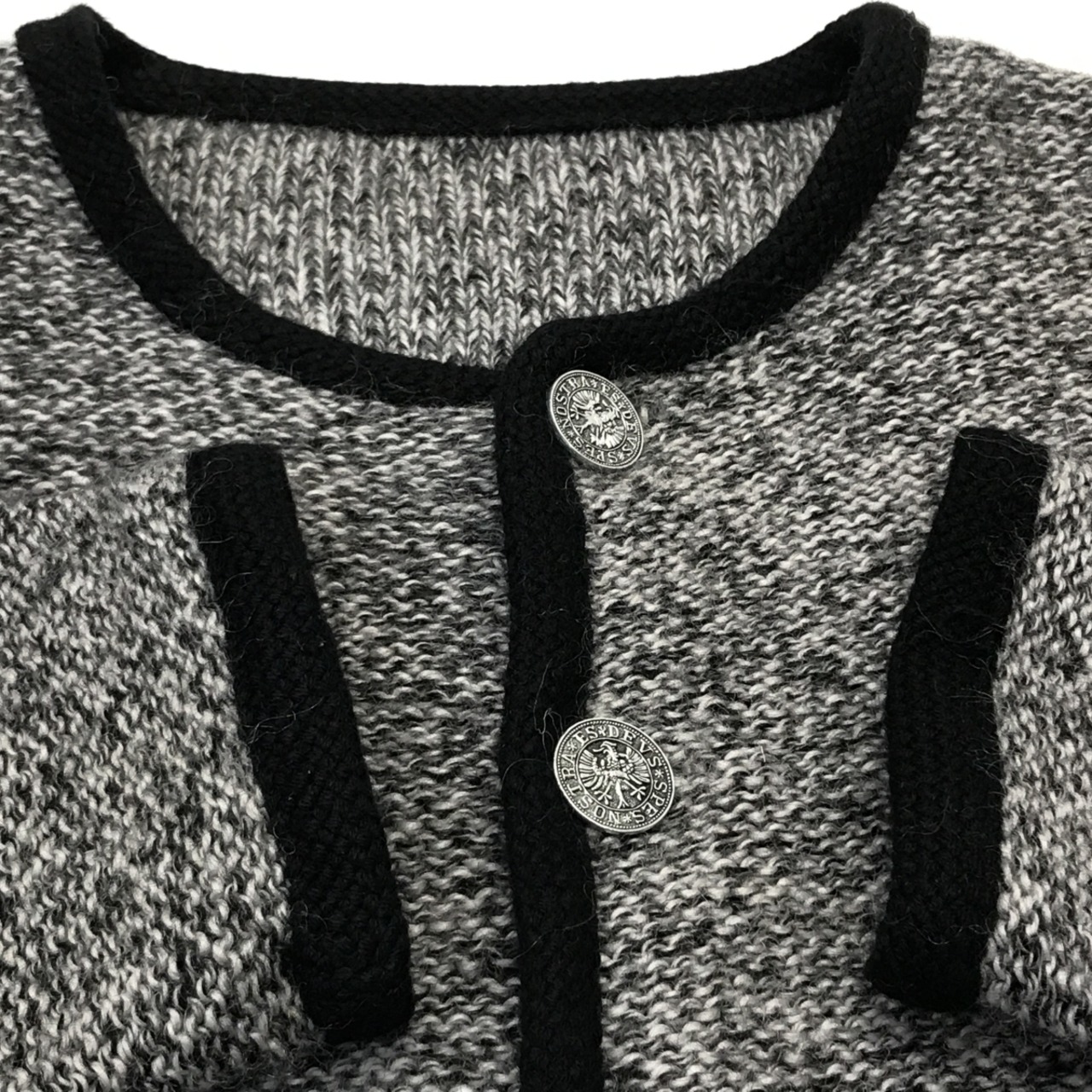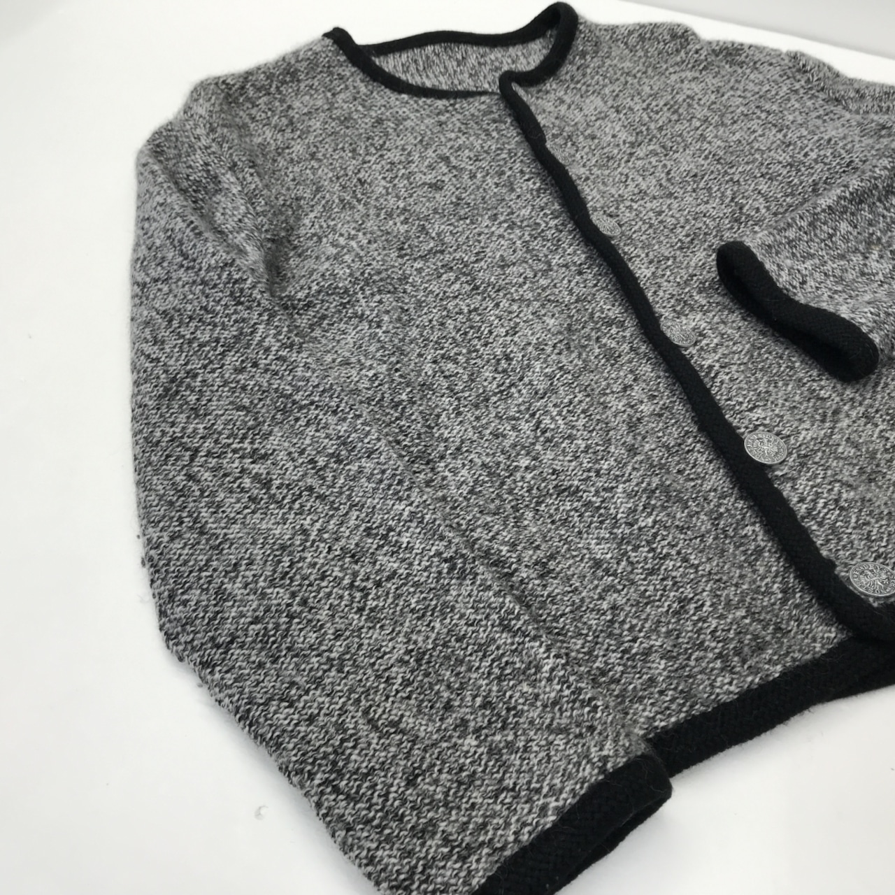 USED ユーズド ノーカラー チロリアン風カーディガン 襟なしジャケット グレー ブラックパイピング メタルボタン XL
