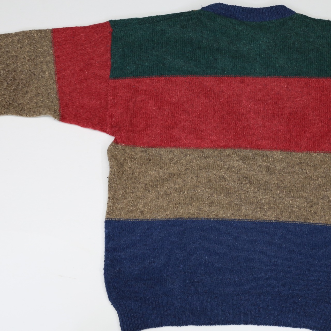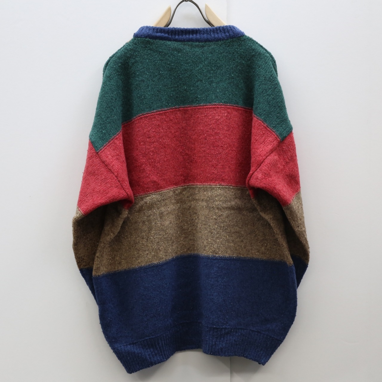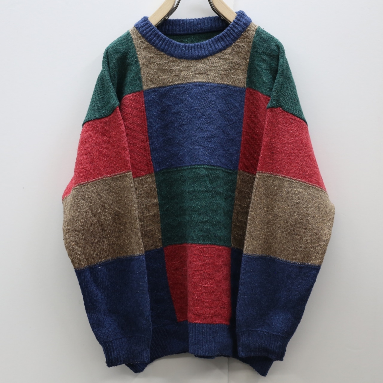 USED ユーズド ニット 長袖 セーター クルーネック ブロックパターン グリーン ブルー レッド
