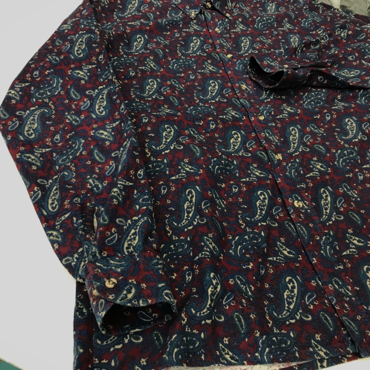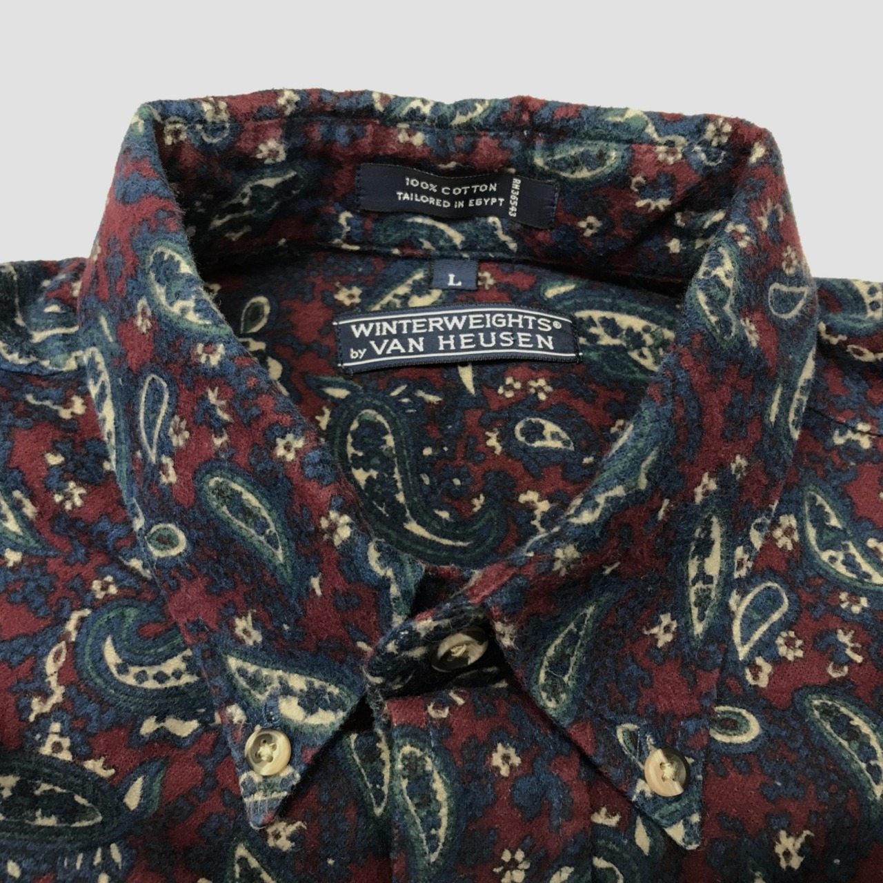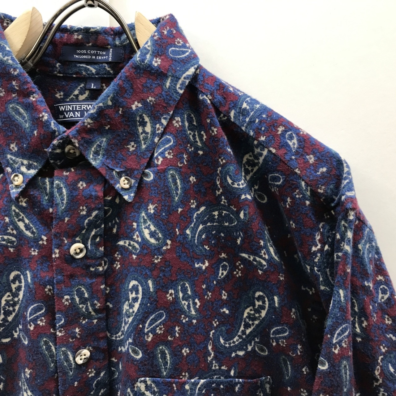 VAN HEUSEN WINTER WEGITS 80〜90年代 デッドストック? ペイズリー柄 起毛ネルシャツ ボタンダウンシャツ 長袖 RED WINE XL