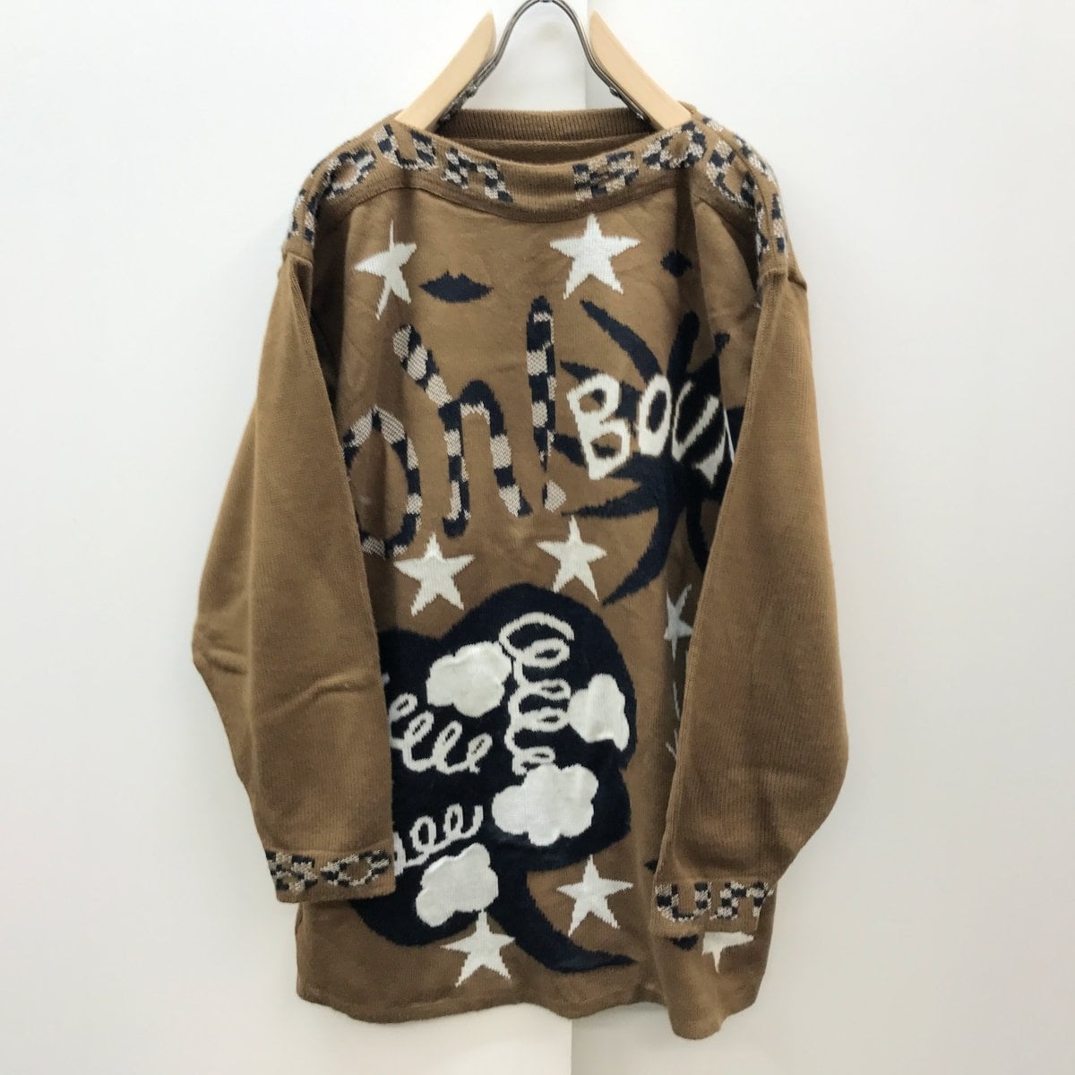 USED EURO 80〜90年代 FRANCE FABRIC 総柄 ポップアートデザインセーター ボートネック 7分丈 ニット キャラメル L