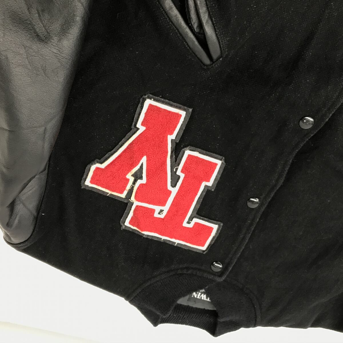 BUTWIN バトウィン 80年代 USA製 袖革スタジャン 胸パイル刺繍パッチ付き ブラック XL