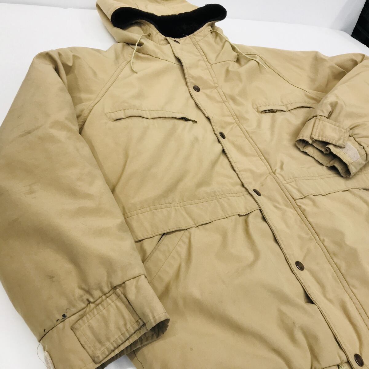 USED ユーズド 70年代 フード裏ボア 中綿入り マウンテンパーカー ロケットTALON 涙TALON ベージュ 長袖 L