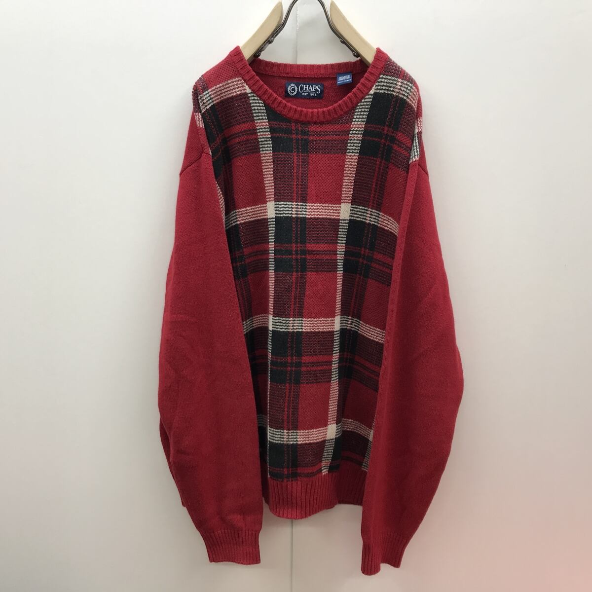 CHAPS チャップス 赤タータンチェック柄 クルーネックニットセーター XXL 長袖