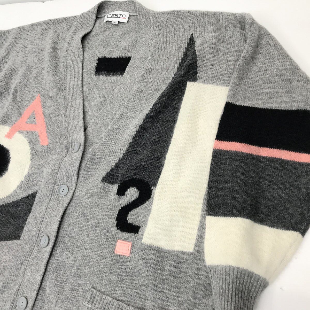 CERTO チェルト 80〜90年代 アンゴラ混 インパクト・ポップアートデザイン ロングカーディガン 長袖 L