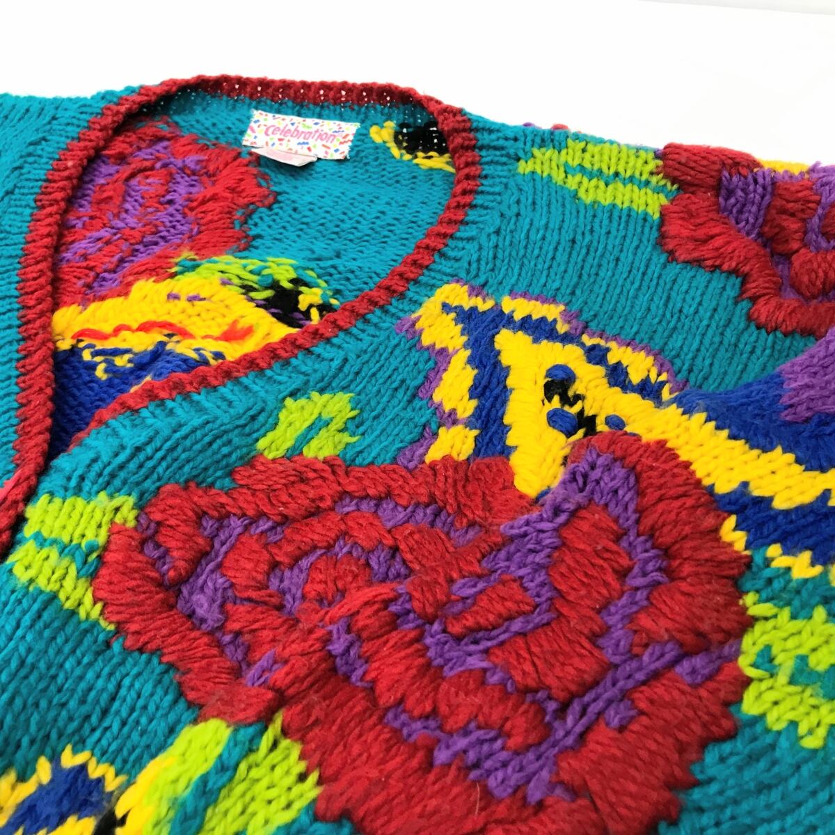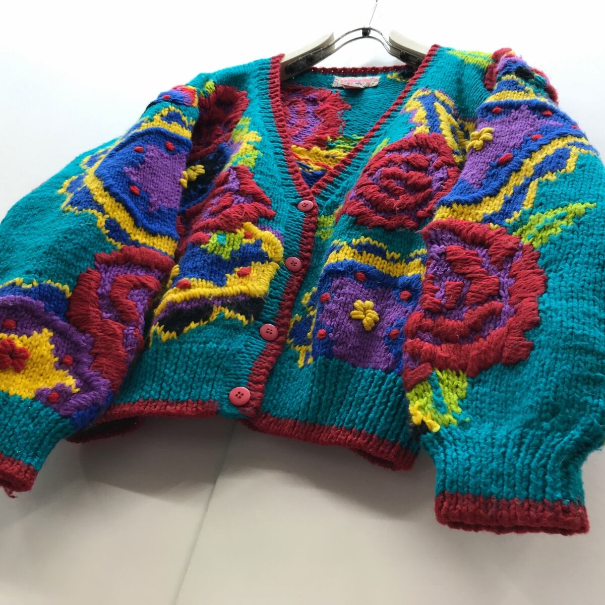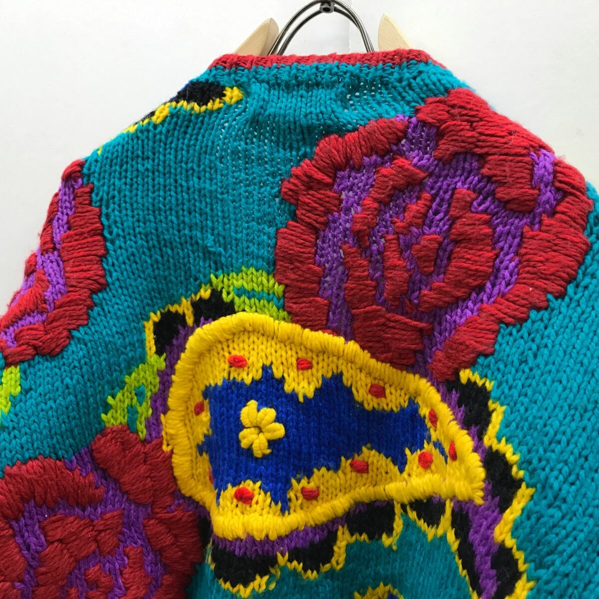 CELEBRATION セレブレーション 80〜90年代 3D立体編み アートデザイン ショート丈カーディガン 長袖 XL