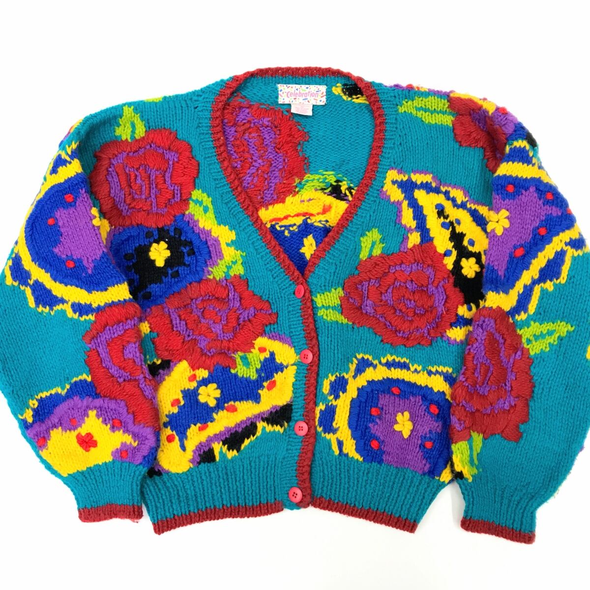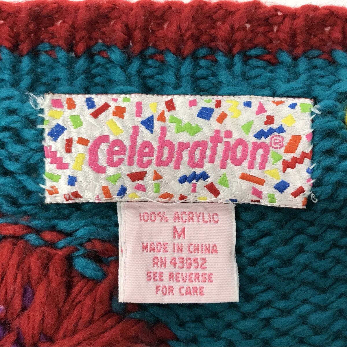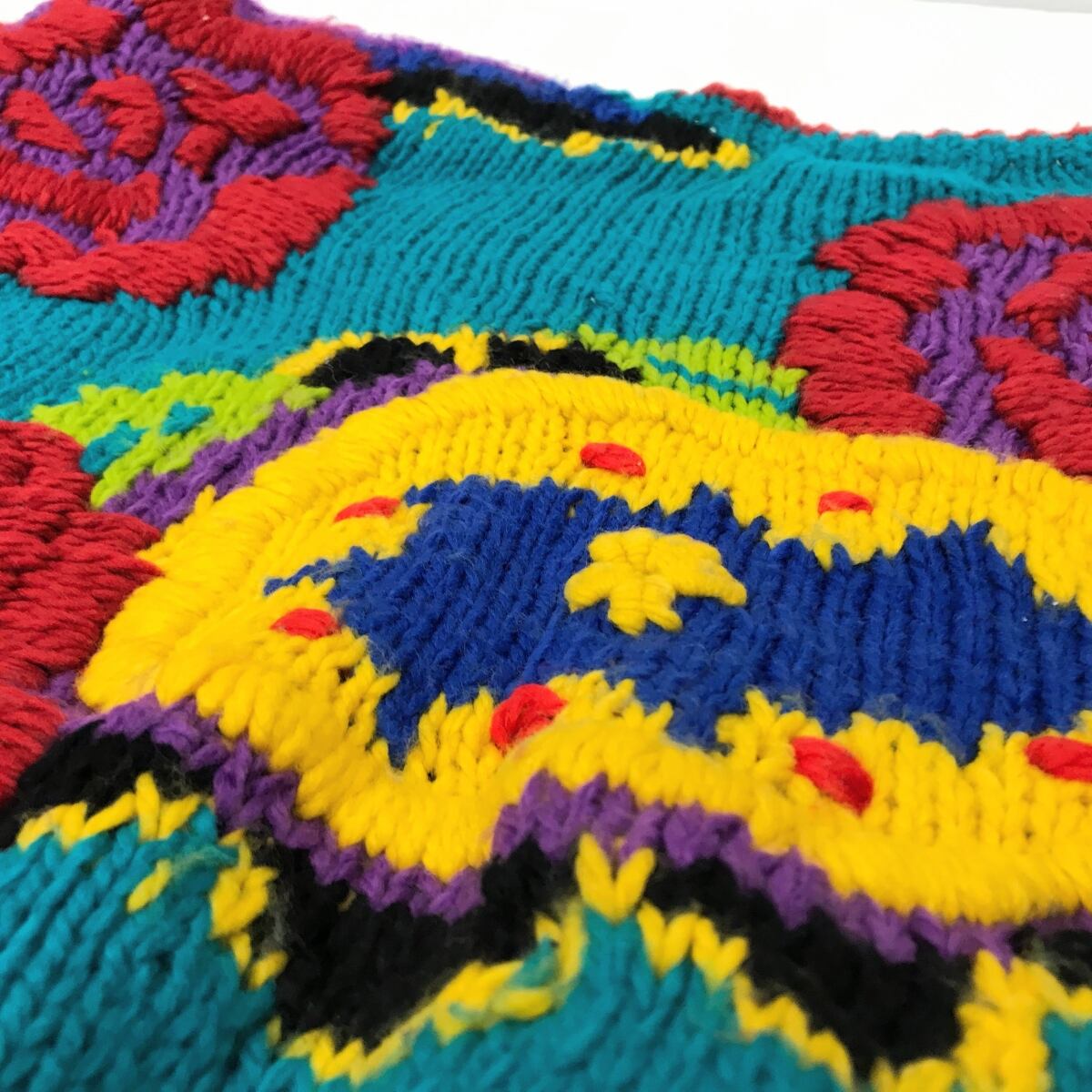 CELEBRATION セレブレーション 80〜90年代 3D立体編み アートデザイン ショート丈カーディガン 長袖 XL