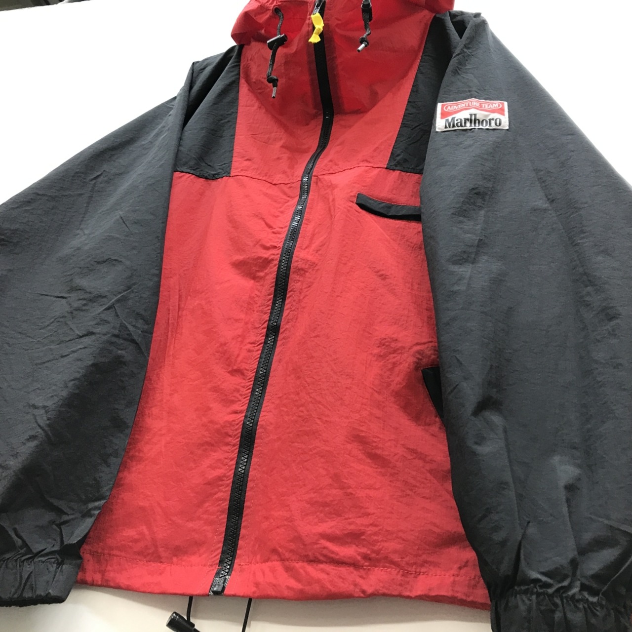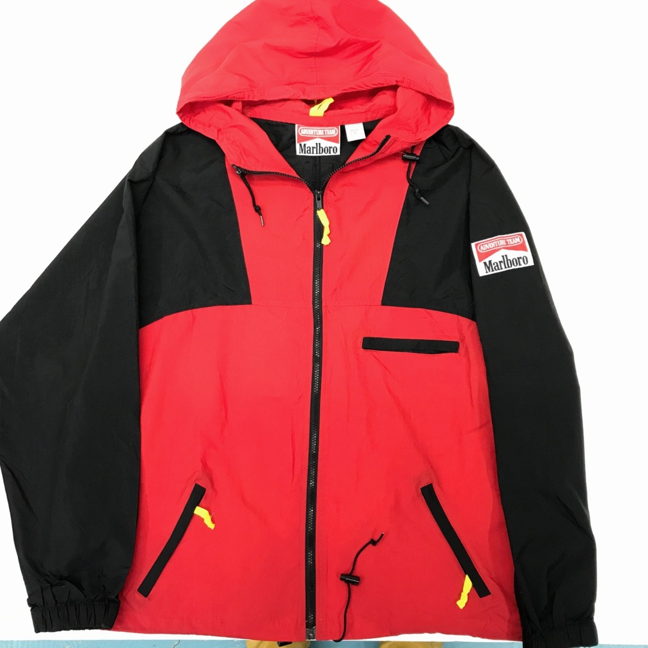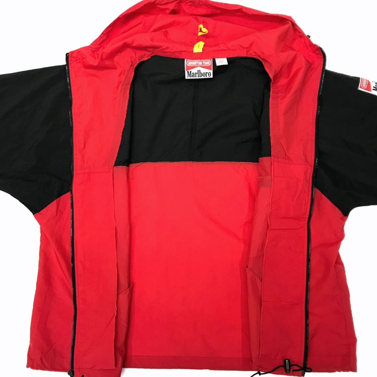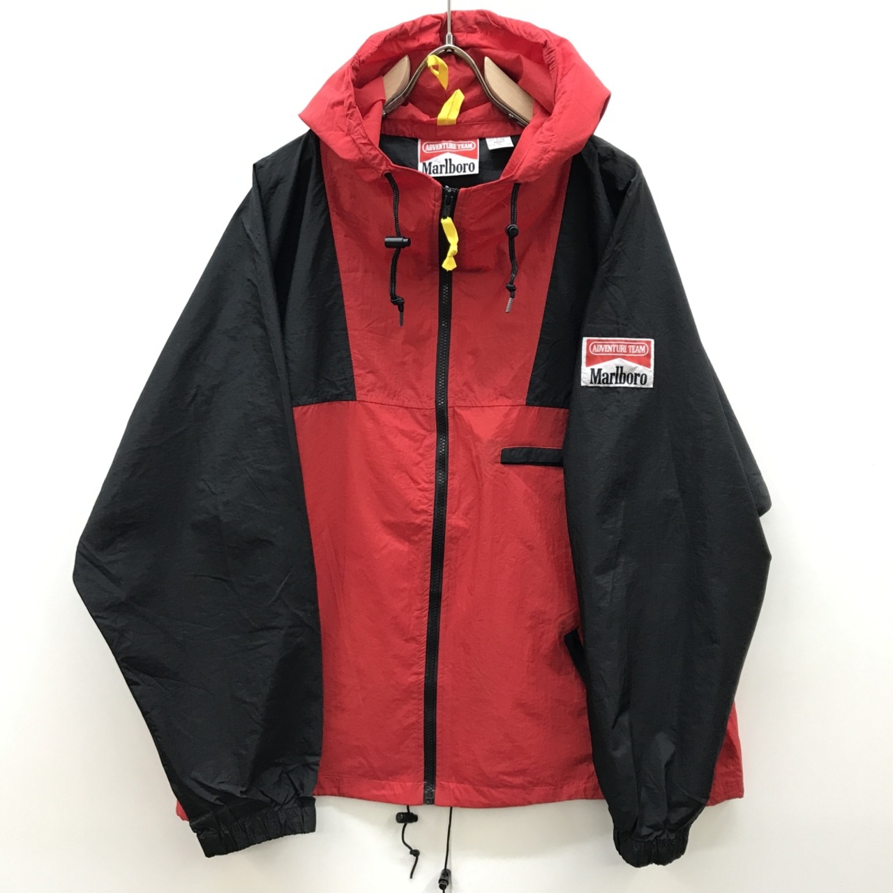 MARLBORO ADVENTURE TEAM マルボロ 90年代 フルジップ ナイロン フード パーカー2トーン 黒赤 XXL 長袖