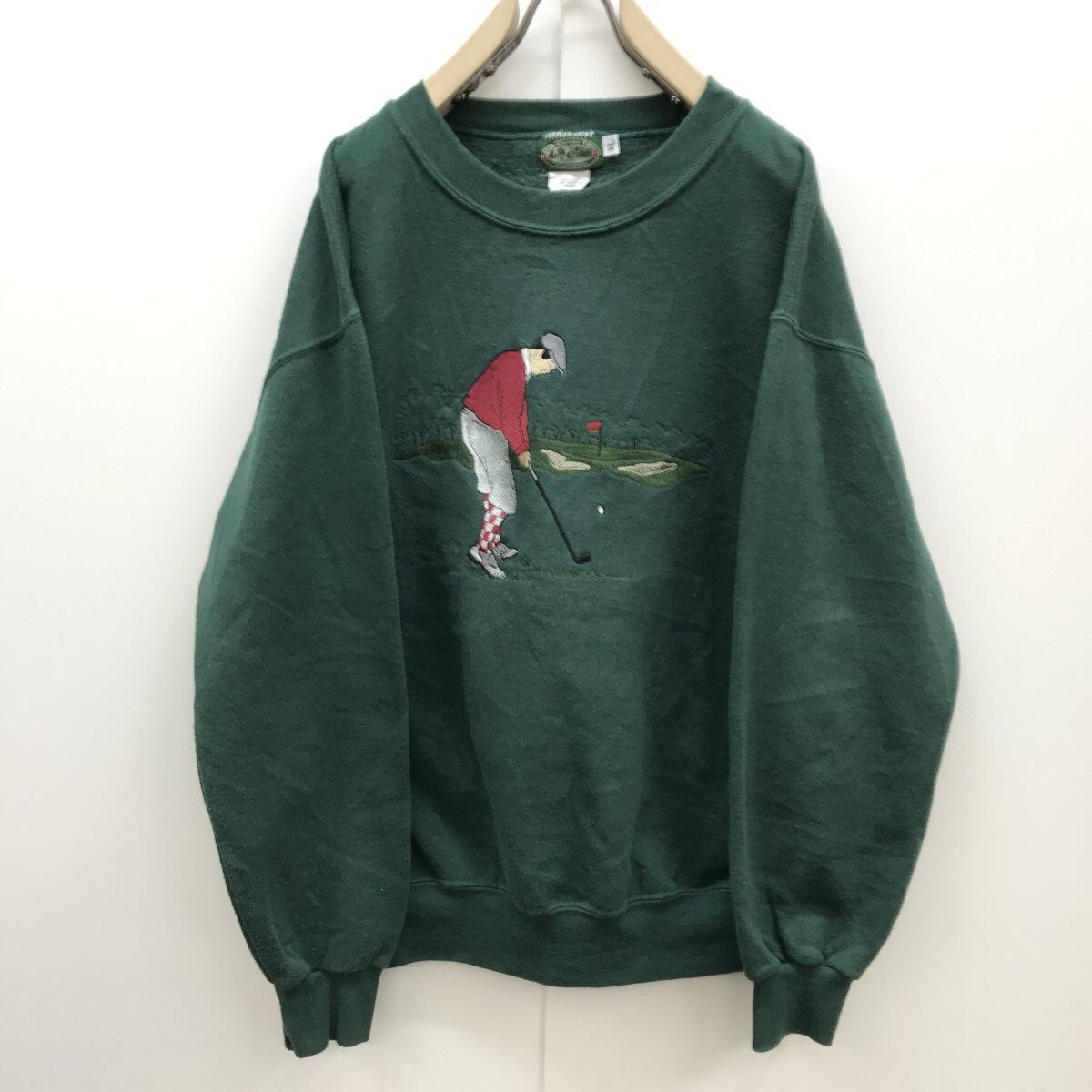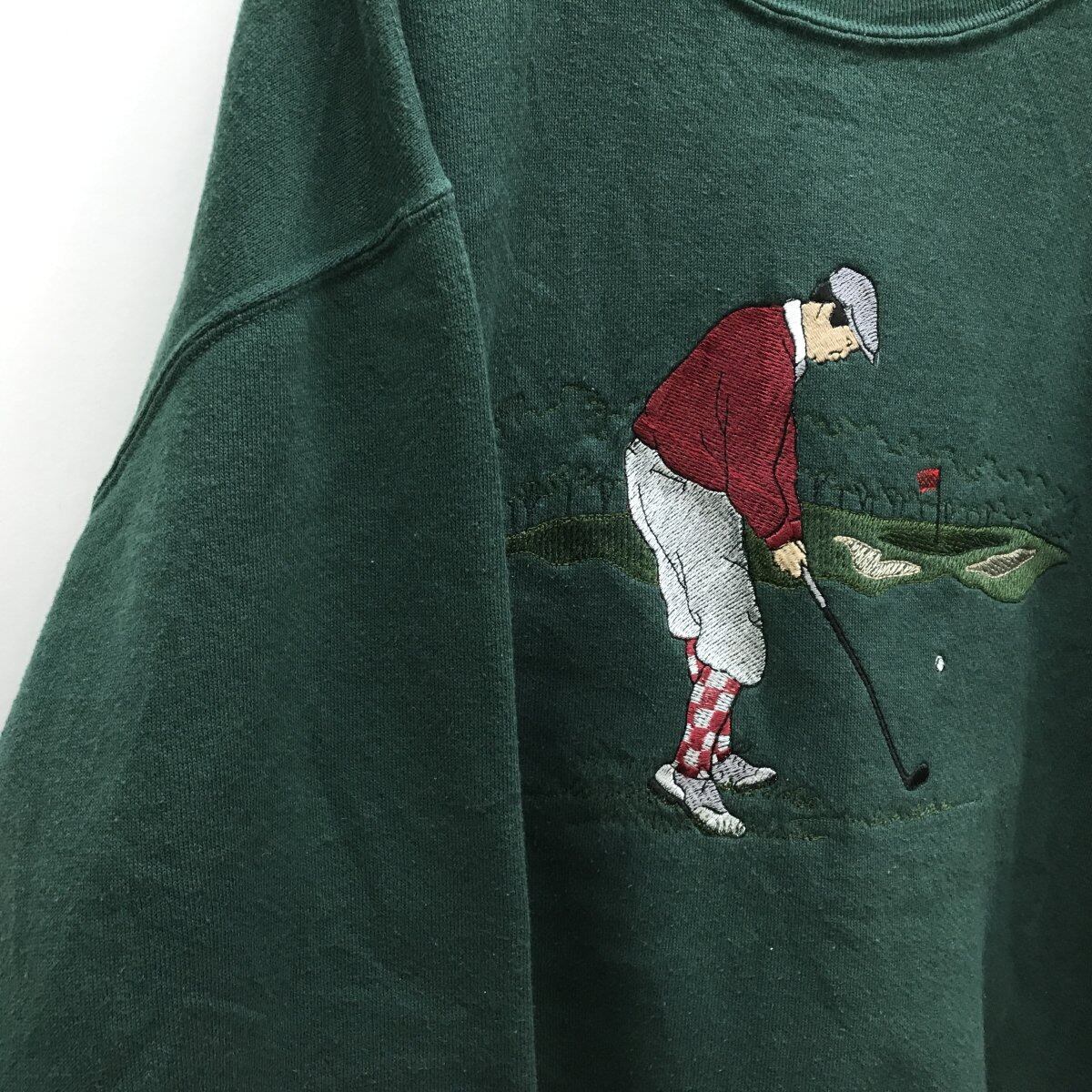 古着 ゴルフ ロゴ刺繍 スウェットシャツ トレーナー 緑