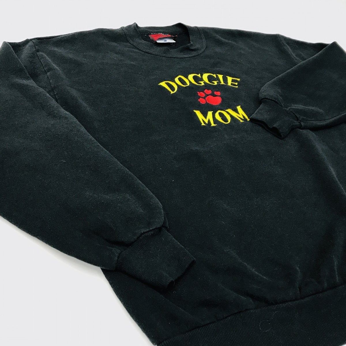 JERZEES ジャージーズ 90〜00年代 USA製 DOGGIE MOM ロゴ刺繍 肉球柄 POW PAD スウェット ブラック L