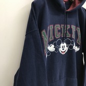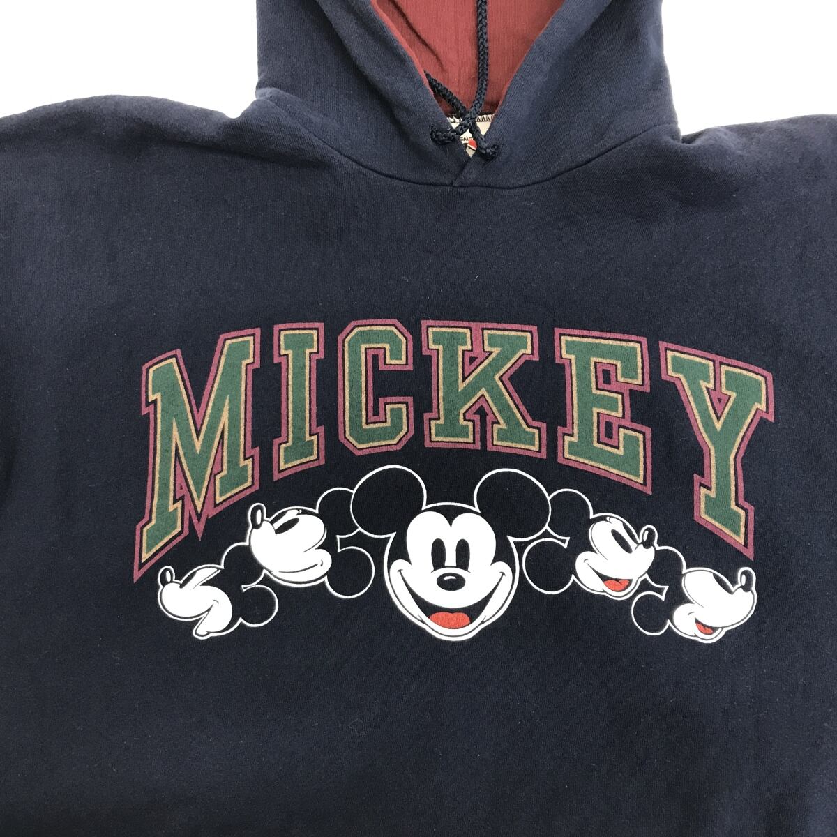 DISNEY DESIGNS ディズニーデザインズ 80〜90年代 USA製 ミッキープリントパーカー フーディー ネイビー XL