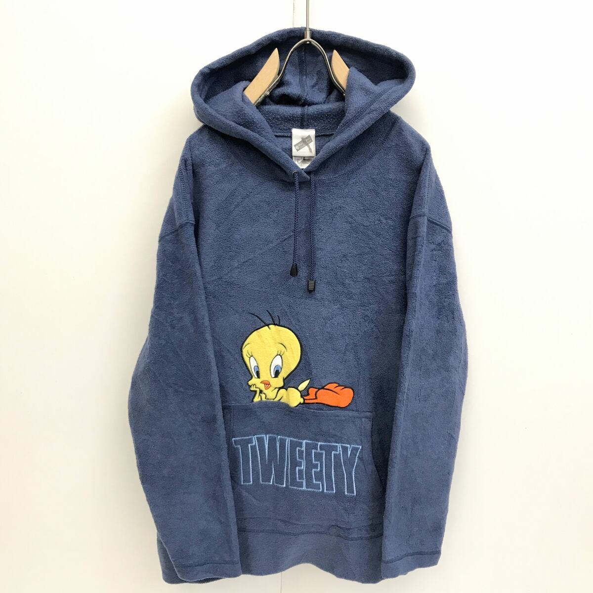 WARNER BROTHERS STUDIO STORE ワーナー90年代 トゥイーティー TWEETY フリースパーカー アップリケ刺繍 うすネイビー L 長袖