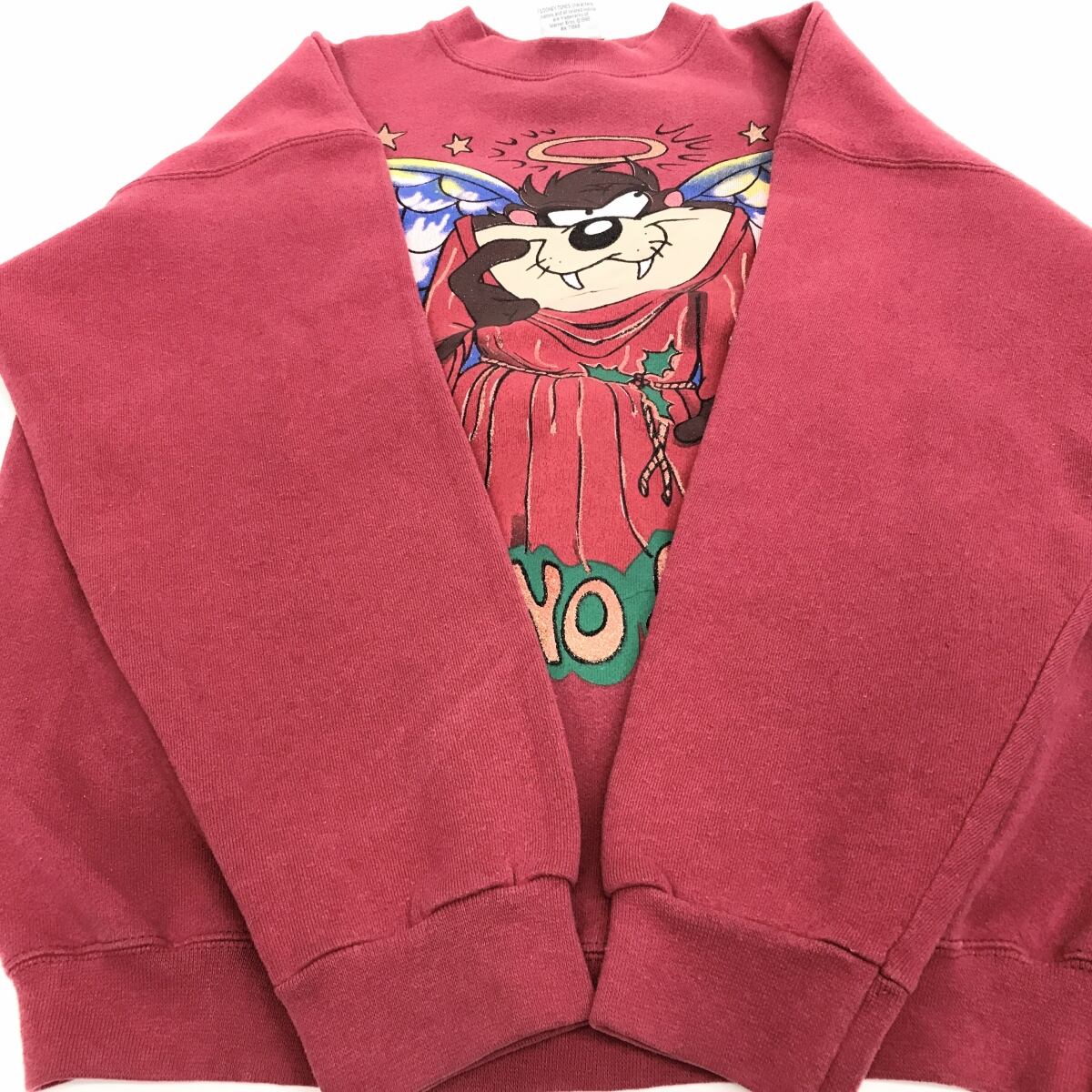 LOONEY TUNES PRODUCT ルーニー・テューンズ プロダクト90年代 USA製 ANGEL TAZ! タズマニアンデビル インパクトプリント 長袖スウェット レッドピンク XL