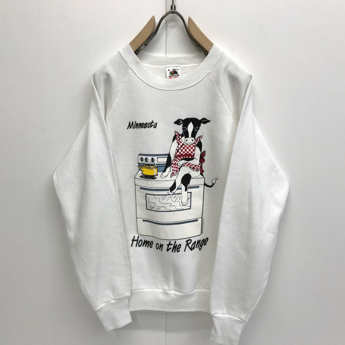FRUIT OF THE LOOM フルーツオブザルーム 80〜90年代 USA製 ウシ アニマル ポップ アート プリントスウェット ホワイト L 長袖