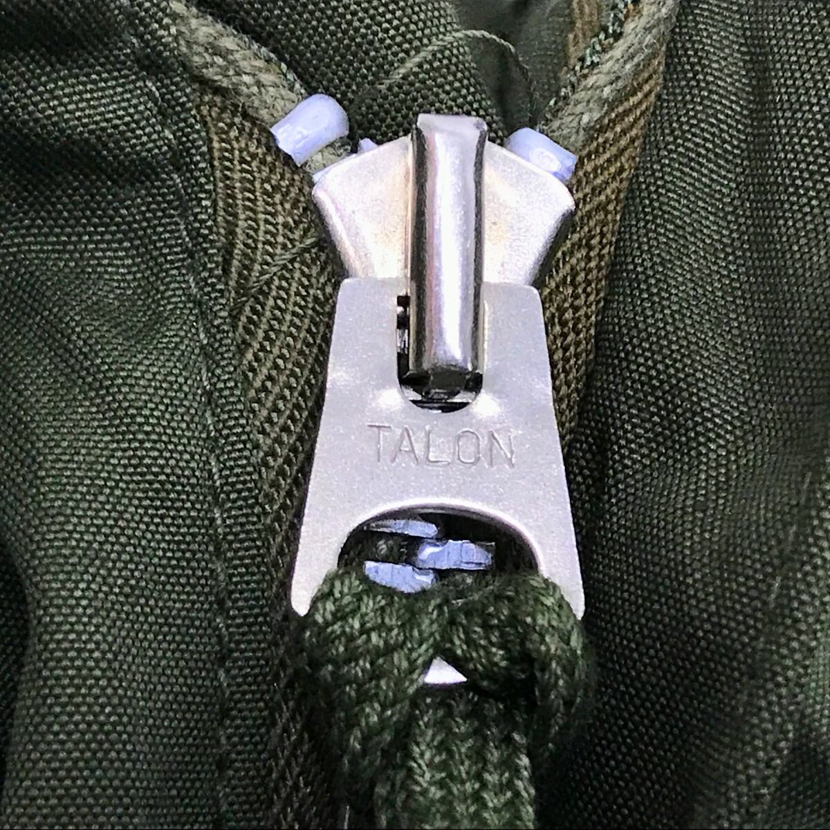 ファスナーはTALONのうつくしい扇形のアルミジッパー搭載で