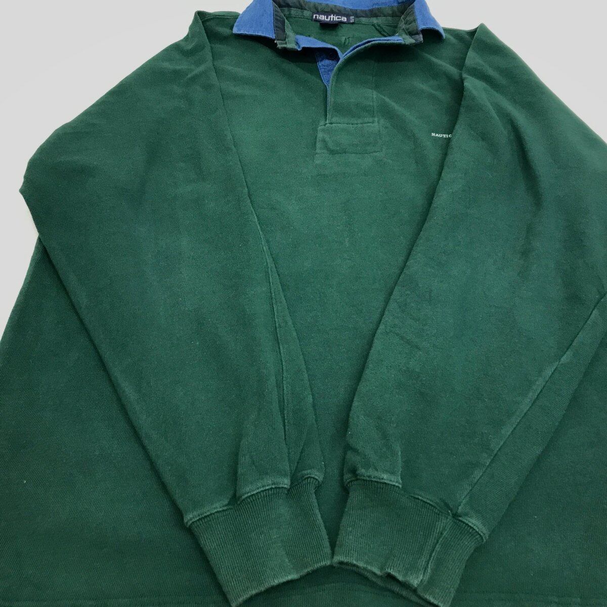 NAUTICA ノーチカ 90年代 長袖 ラガーシャツ ワンポイント プルオーバー ハンターグリーン XXL