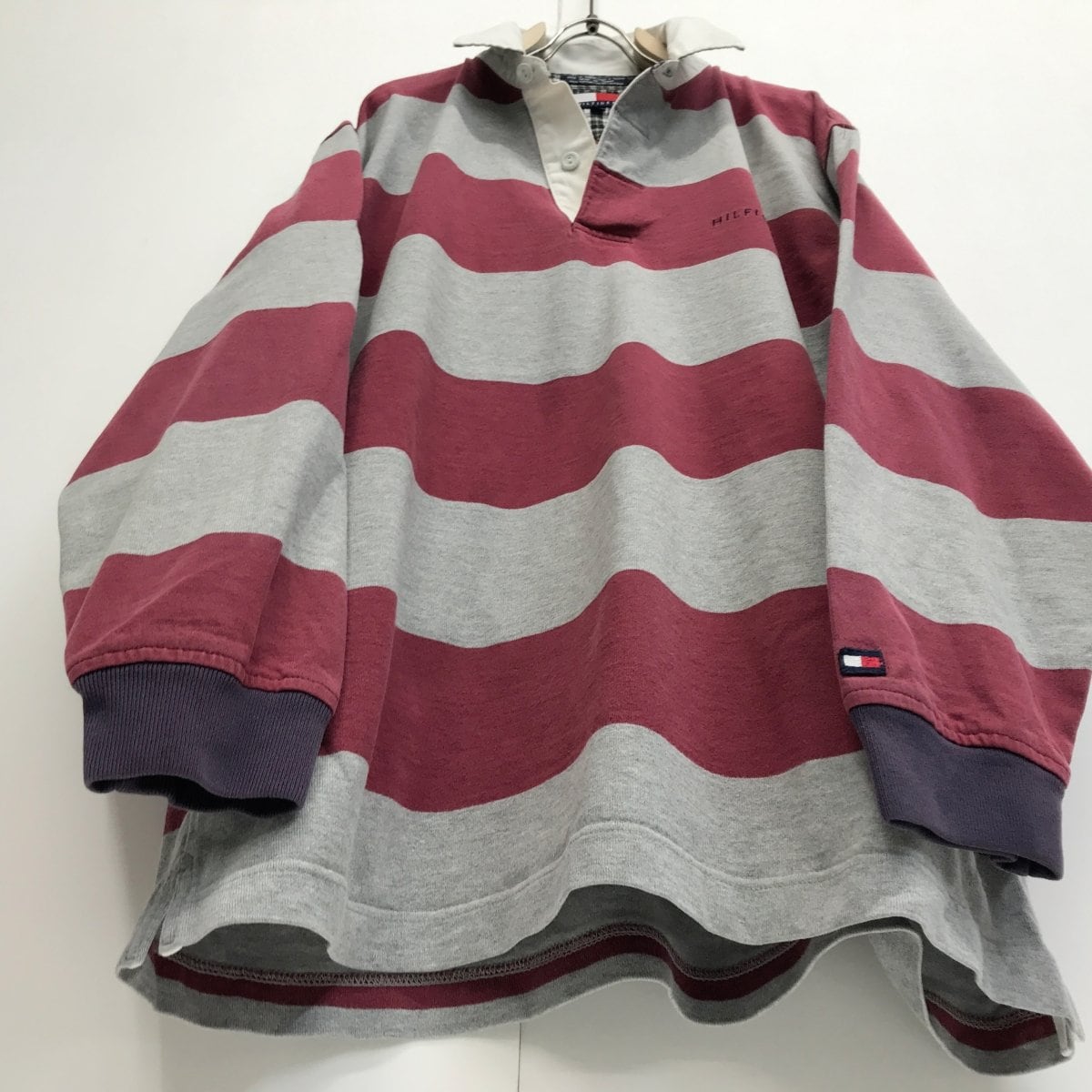 TOMMY HILFIGER トミーヒルフィガー 90年代 長袖 太ボーダー ラガーシャツ ラグビーシャツ プルオーバー L
