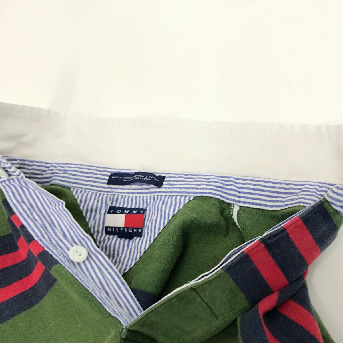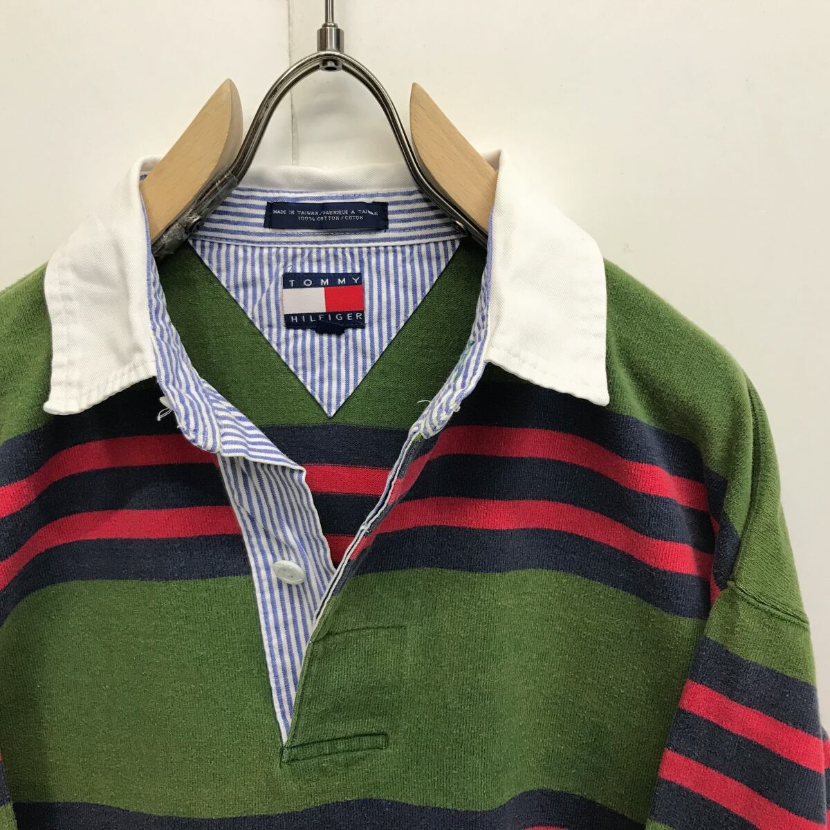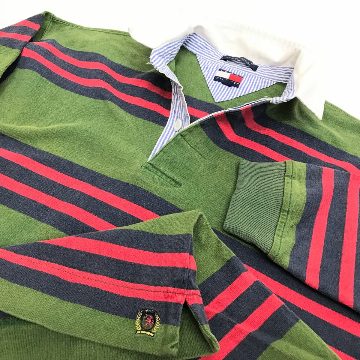 TOMMY HILFIGER トミーヒルフィガー 90年代 長袖 ボーダー ラガーシャツ ラグビーシャツ プルオーバー シトロングリーン L