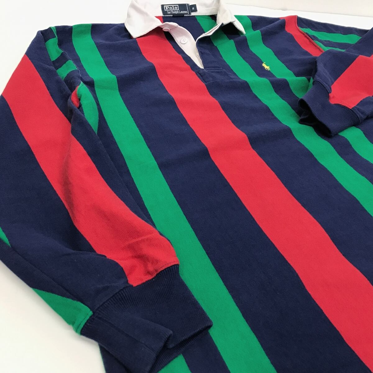 POLO by Ralph Lauren ラルフローレン 90年代 マルチストライプ 長袖 ラガーシャツ ワンポイント プルオーバー L